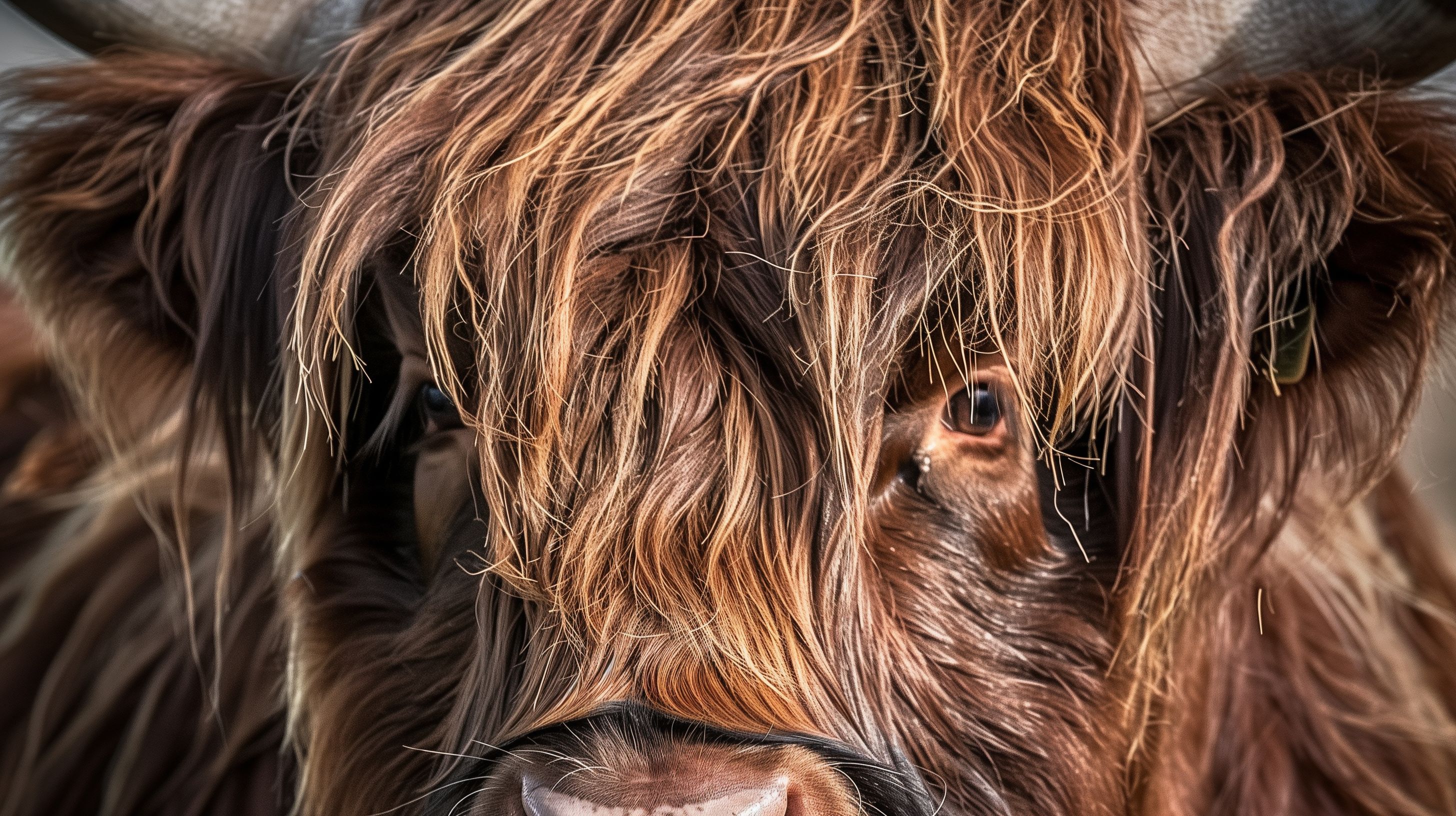 Dieses Foto zeigt eine Nahaufnahme einer Highland-Kuh mit ihrem charakteristischen struppigen, braunen Fell. Das Bild konzentriert sich auf das Gesicht des Tieres, mit einem sichtbaren Auge und der rauen, fast zerzausten Textur des Fells. Der Hintergrund ist unscharf, was den Fokus auf das Gesicht der Kuh lenkt. Dieses Stockfoto eignet sich hervorragend für den Einsatz in Blogbeiträgen, Newslettern oder Social-Media-Postings, die sich mit ländlichen Motiven, Landwirtschaft oder Tieren befassen. Es ist in hoher Auflösung verfügbar und unter einer Creative-Commons-Lizenz kostenlos nutzbar.