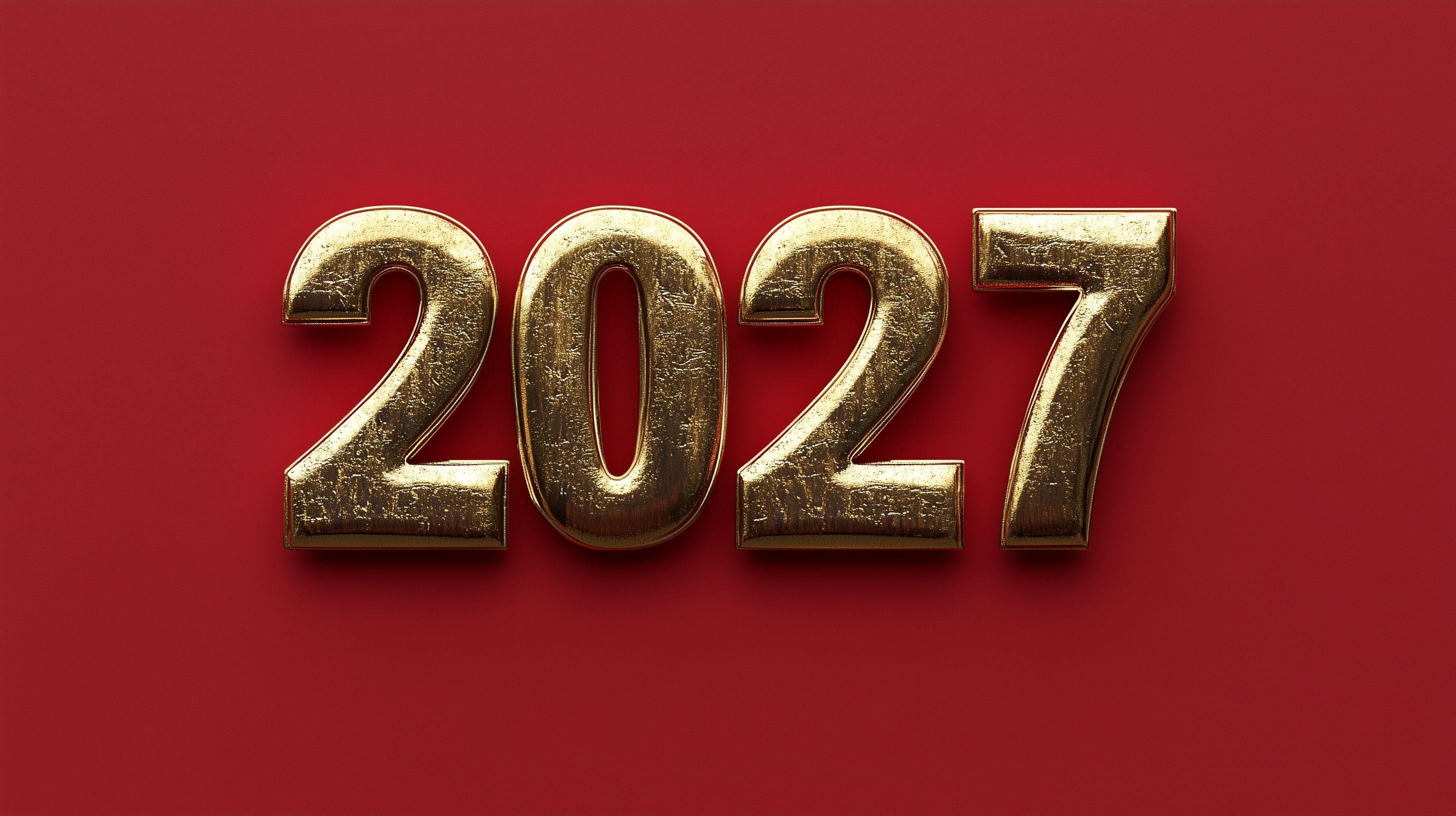 Das Bild zeigt vier elegante, goldfarbene 3D-Zahlen, die auf einem intensiv roten Hintergrund platziert sind. Die Zahlen sind in einem klassischen, modernen Schriftstil gestaltet und vermitteln einen Eindruck von Luxus und Feierlichkeit. Diese Komposition eignet sich hervorragend als Titelbild oder Hintergrund für Neujahrsgrüße, Werbematerialien und andere Designs mit Bezug zum Jahreswechsel 2027. Als kostenloses Stockfoto in hoher Auflösung und unter Creative-Commons-Lizenz lässt es sich vielseitig in Blogs, auf Websites oder in sozialen Medien einsetzen.