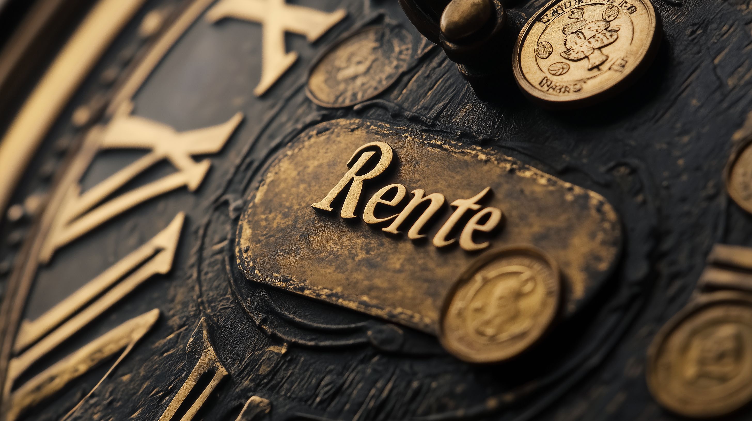 Dieses Foto zeigt ein Konzept der Rente durch verschiedene symbolische Elemente. Im Mittelpunkt steht ein altes, abgenutztes Rentenlabel, das von Münzen und einem Zahnrad umgeben ist. Diese Komponenten symbolisieren das Thema Altersvorsorge, Finanzen und den zeitlichen Aspekt des Renteneintritts. Das Foto hat einen vintage-artigen, nostalgischen Charakter, der die Langfristigkeit und Tradition des Rentensystems widerspiegelt. Es eignet sich ideal als kostenloses Stockfoto für Beiträge zu Themen wie Rentenplanung, Altersvorsorge oder Finanzmanagement in hoher Auflösung und unter Creative-Commons-Lizenz.