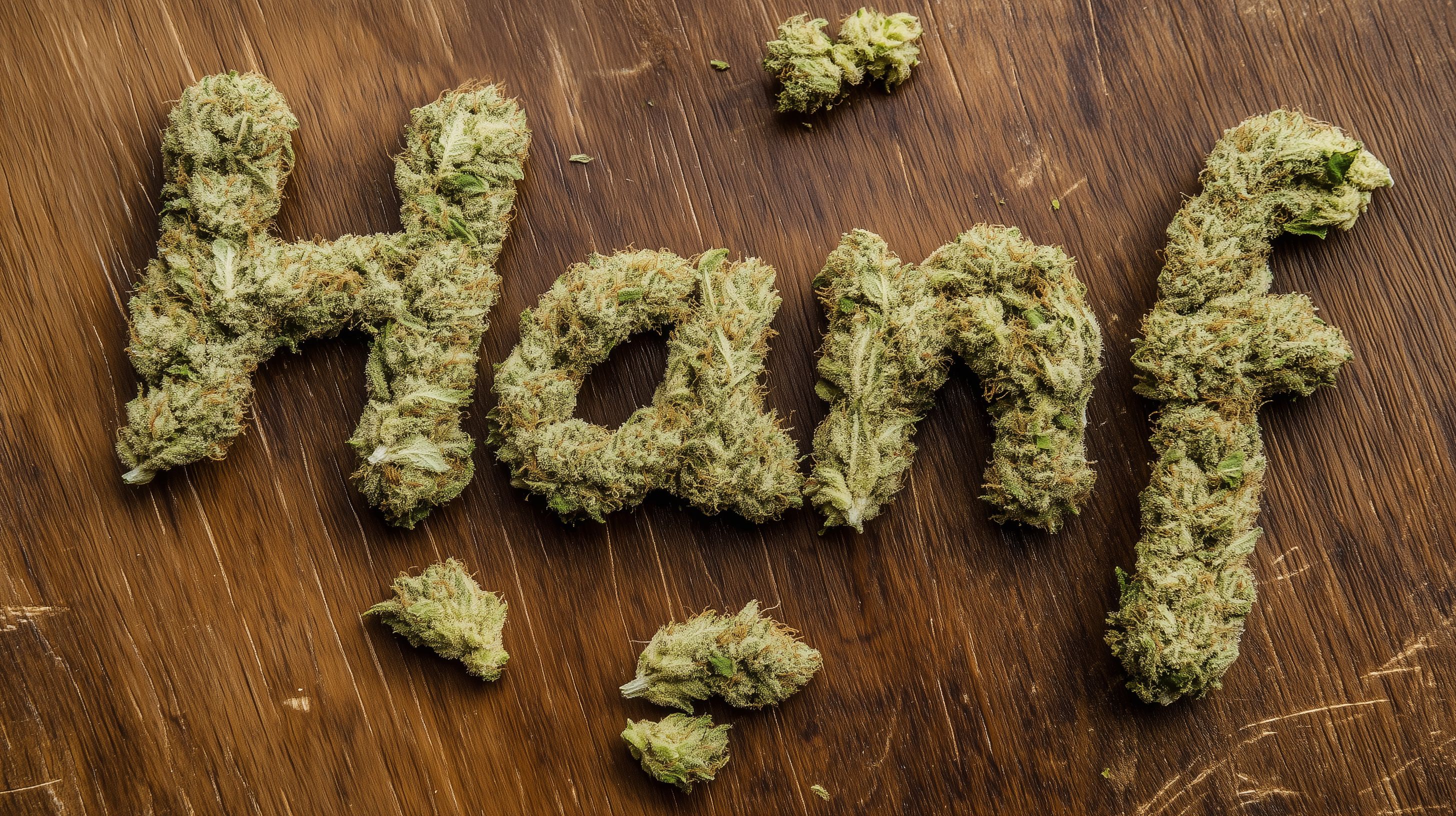 Das Foto zeigt einen dekorativen Hanfstrauch aus getrockneten Cannabisblüten auf einem rustikalen Holzboden. Die grünen, buschigen Blüten sind kunstvoll arrangiert und heben sich farblich vom dunklen Holzuntergrund ab. Dieses Stockfoto eignet sich hervorragend als Hintergrundbild für Artikel, Blogbeiträge oder Social-Media-Posts rund um das Thema Cannabis, Legalisierung und Hanf. In hoher Auflösung und unter einer Creative-Commons-Lizenz ist dieses kostenlose Stockfoto frei für private und kommerzielle Zwecke verwendbar.