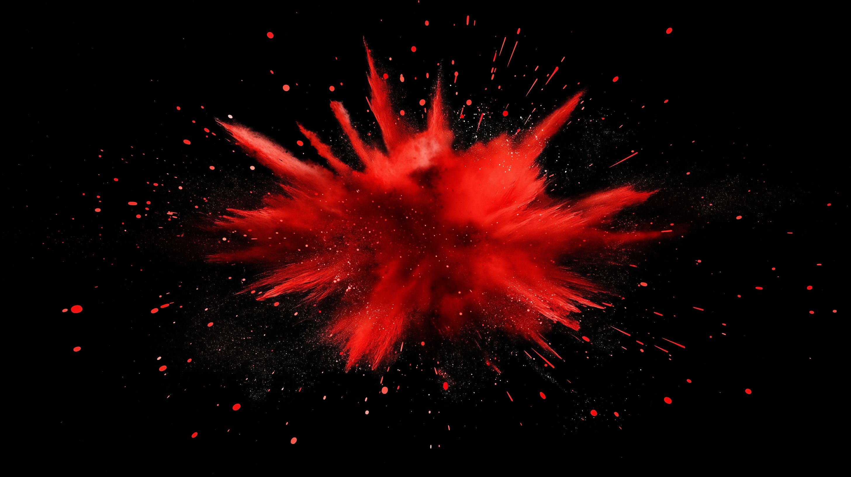Dieses eindrucksvolle Foto zeigt eine dramatische rote Explosion auf schwarzem Hintergrund. Die Explosion füllt den Großteil des Bildes und erstreckt sich in dynamischen, zackigen Formen. Die intensiv rote Farbe und die dunkle Umgebung erzeugen einen starken Kontrast und verleihen dem Bild eine kraftvolle, energiegeladene Atmosphäre. Diese Darstellung könnte für verschiedene kreative Projekte, wie Werbung, Marketing, Poster oder Webdesign, eingesetzt werden. Als kostenloses Stockfoto in hoher Auflösung und unter Creative-Commons-Lizenz kann dieses Bild vielseitig und flexibel genutzt werden.