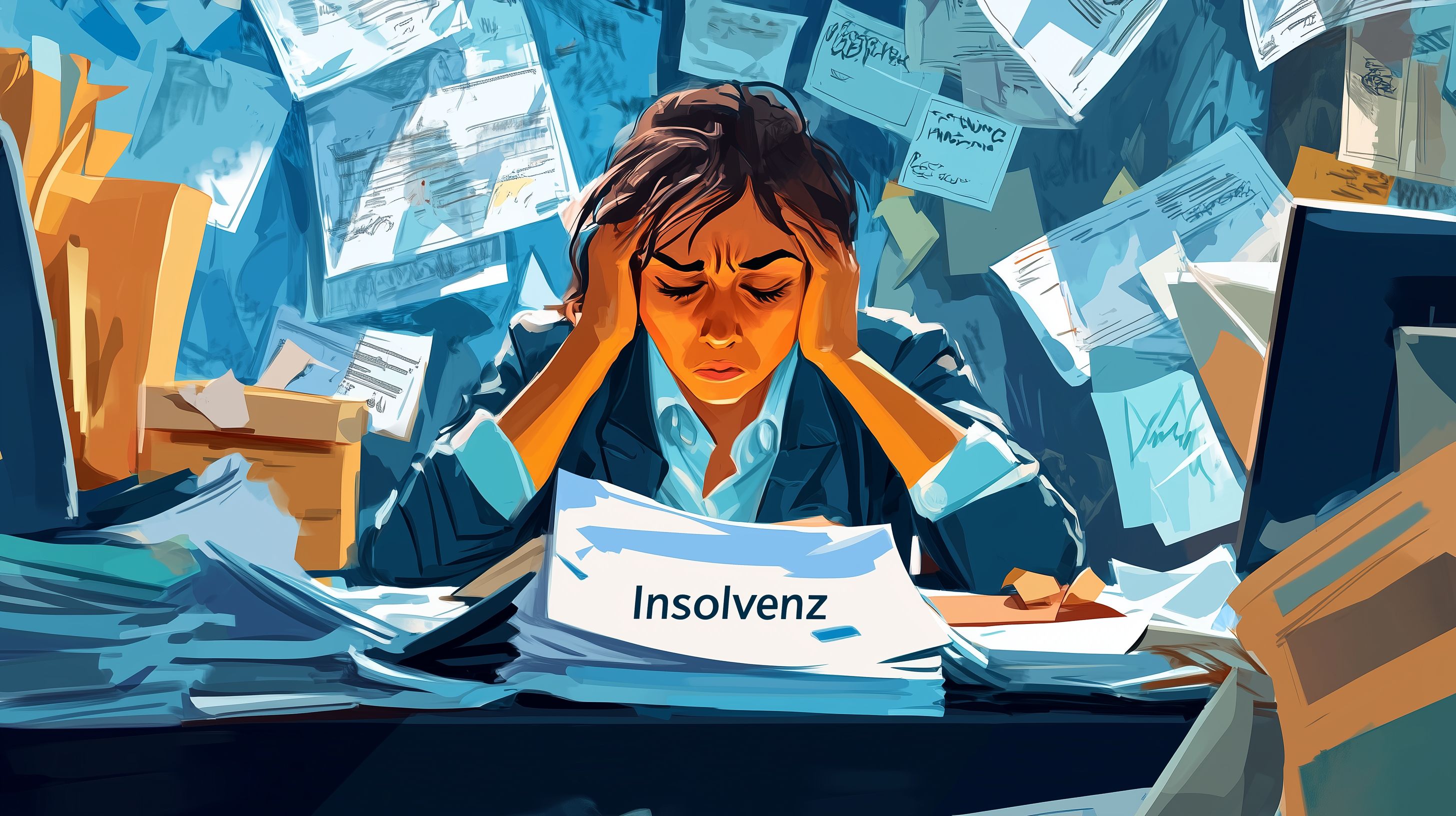 Das Bild zeigt eine gestresste Büro-Angestellte, die mit einem Berg von Insolvenz-Dokumenten auf ihrem Schreibtisch kämpft. Mit geschlossenen Augen und schmerzverzerrtem Gesichtsausdruck sitzt sie inmitten eines Chaos aus Papieren, Ordnern und Akten. Die farbenfrohe, abstrakte Hintergrundgestaltung verstärkt den Eindruck von Überforderung und Dringlichkeit. Das Foto eignet sich hervorragend als Illustrationselement für Themen wie Finanzkrise, Unternehmensinsolvenz, Problembewältigung im Berufsleben oder allgemeine Büroarbeit. Als kostenloses Stockfoto in hoher Auflösung und unter Creative-Commons-Lizenz nutzbar, ist es vielseitig einsetzbar, z.B. für Blogs, Newsletter, Social-Media-Kanäle oder Werbekampagnen.