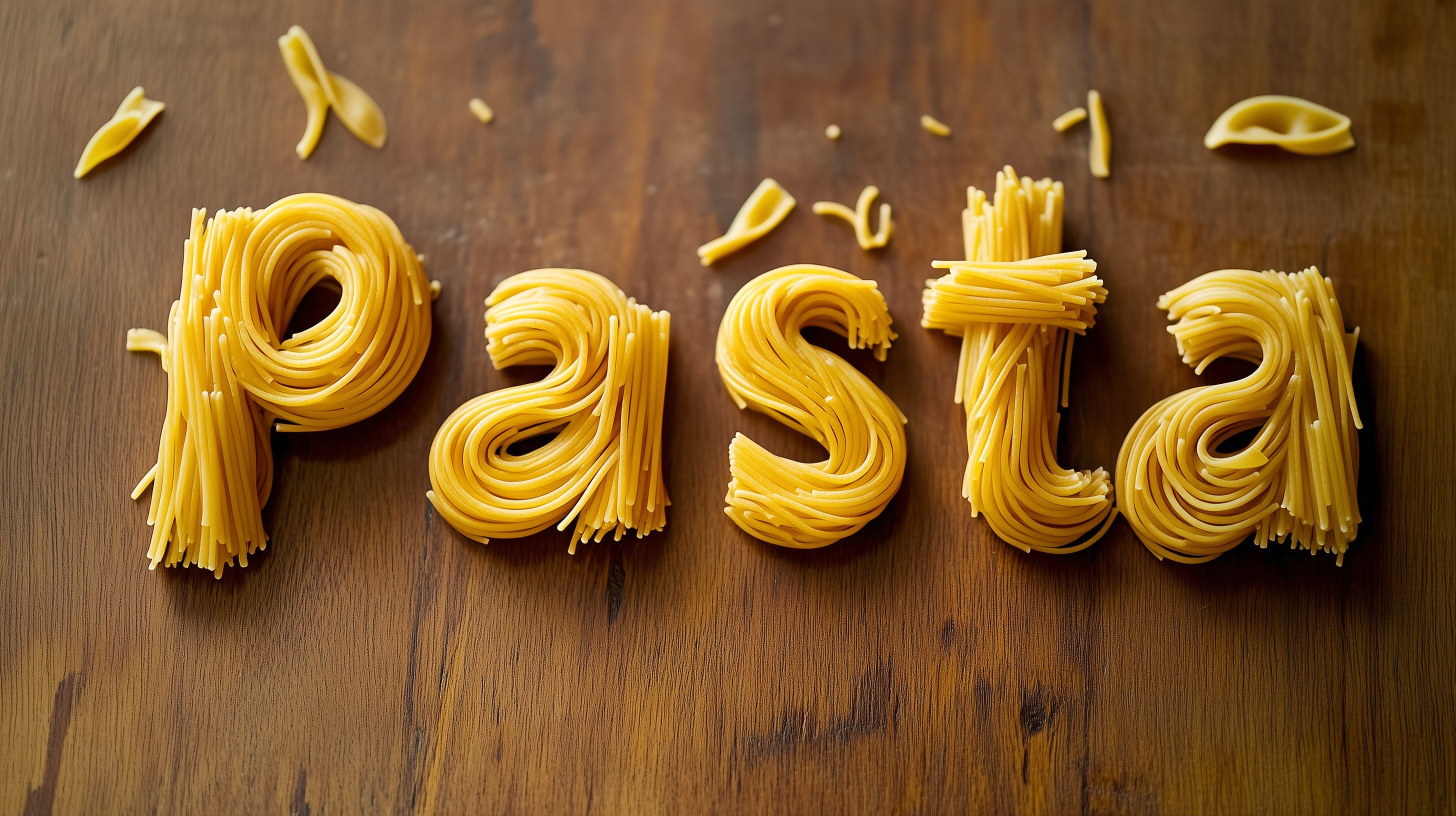 Dieses Stockfoto zeigt eine Auslage verschiedener handgefertigter Pastaarten vor einem rustikalen Holztischhintergrund. Die detailreich gewundenen, frisch hergestellten Spaghetti, Tagliatelle und andere Pastasorten sind in natürlichen Gelbtönen gehalten und verleihen dem Bild eine warme, authentische Optik. Die Komposition im Flat-Lay-Stil und die natürliche Beleuchtung erzeugen eine stimmungsvolle, handwerkliche Atmosphäre, die perfekt für Rezeptblogbeiträge, Kochbuch-Cover oder Werbemittel für italienische Spezialitäten geeignet ist. Dieses hochauflösende, kostenlose Stockfoto unter Creative-Commons-Lizenz bietet vielfältige Einsatzmöglichkeiten für Ihr Projekt.