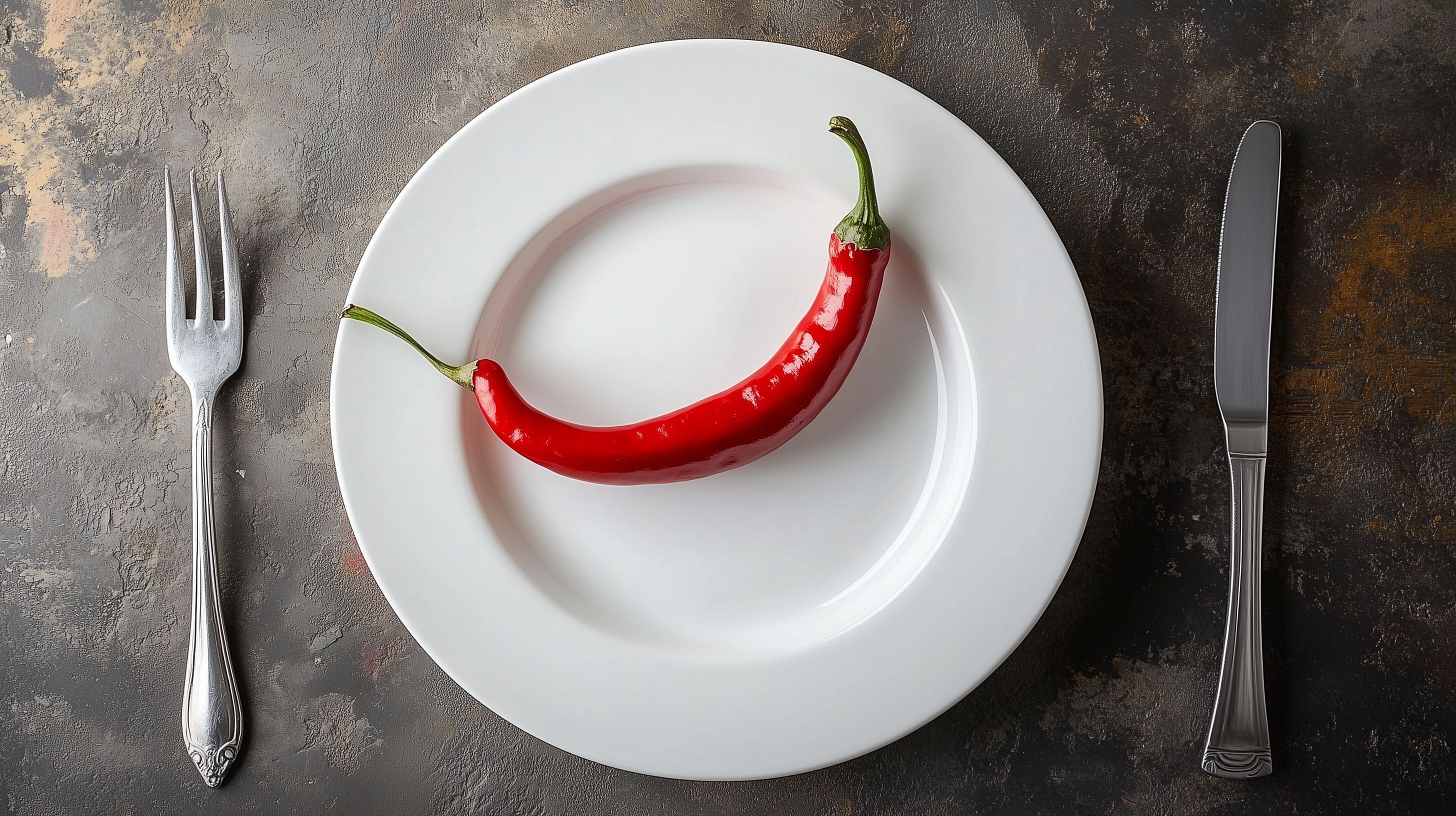 Das Foto zeigt eine einzelne rote Chilischote, die auf einem weißen Teller platziert ist. Der Kontrast zwischen der intensiv roten Farbe der Chili und der klaren, schlichten Optik des Tellers erzeugt eine reduzierte, minimalistisch-ästhetische Anmutung. Diese Aufnahme eignet sich hervorragend als Eye-Catcher in Artikeln und Posts rund um Kochen, Ernährung und Lebensstil. Das hochauflösende Stockfoto steht unter einer Creative-Commons-Lizenz zur freien Nutzung zur Verfügung.