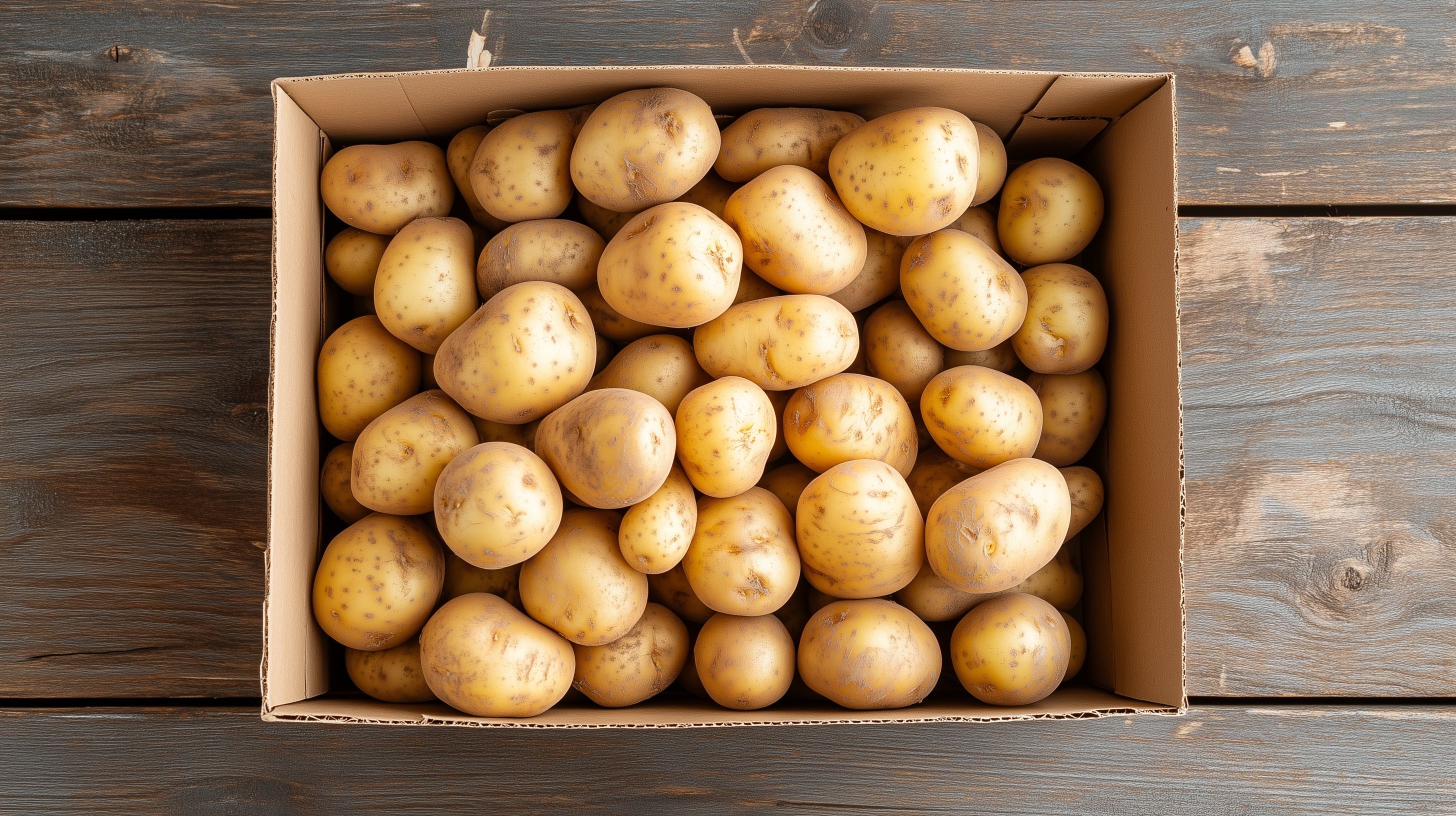 Dieses Foto zeigt eine Kiste voller frischer, gelber Kartoffeln auf einem rustikalen Holzuntergrund. Die Kartoffeln sind gleichmäßig in der Kiste verteilt und ergeben ein natürliches, appetitliches Bild. Die Aufnahme bietet einen schönen Textfreiraum für beispielsweise Werbe- oder Marketingzwecke. Das hochwertige Stockfoto in hoher Auflösung ist kostenfrei und unter einer Creative-Commons-Lizenz verfügbar, sodass es vielseitig in Blogs, Newslettern, Social-Media-Beiträgen oder für Werbematerialien eingesetzt werden kann.