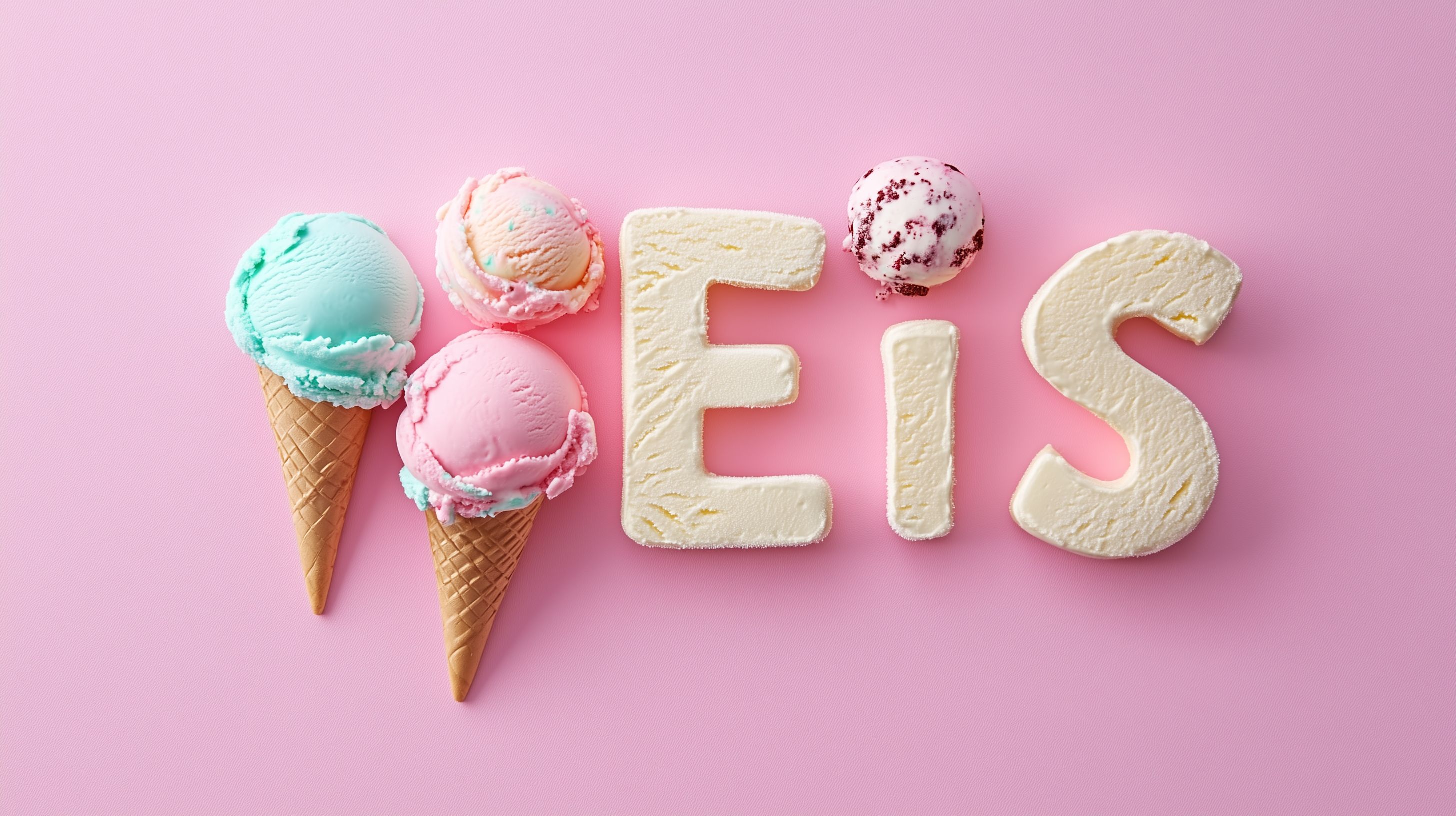 Dieses Foto zeigt eine Auswahl verschiedener Eissorten in pastelligen Farbtönen wie Mintgrün, Rosa und Weiß. Die Eiskugeln sind in Waffel-Förmchen arrangiert und vor einem einfarbigen, rosa Hintergrund platziert. Das Bild vermittelt einen frischen, sommerlichen und appetitlichen Eindruck. Die Nahaufnahme lässt die Details der Eisvariationen gut erkennen. Dieses hochauflösende Stockfoto eignet sich hervorragend für Werbe- und Marketingzwecke wie Blogbeiträge, Soziale Medien oder Werbekampagnen rund um das Thema Eis und Erfrischung. Es steht unter einer Creative-Commons-Lizenz zur freien Verwendung zur Verfügung.