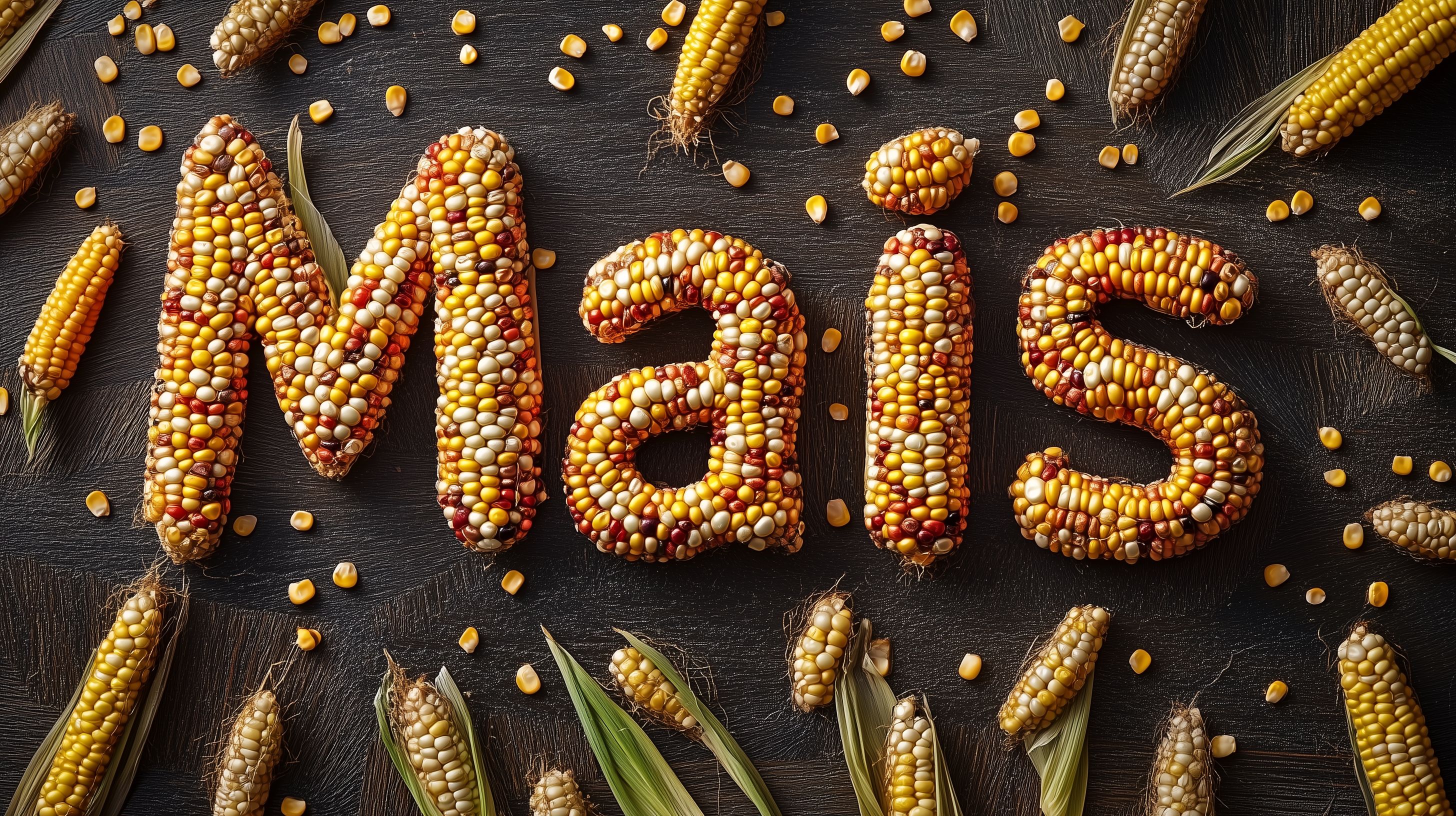 Dieses detailreiche Foto zeigt ein farbenprächtiges Mais-Mosaik in rustikaler Anordnung auf dunklem Hintergrund. Die goldfarbenen Maiskolben und -körner bilden ein natürliches, organisches Muster, das an einen Texteffekt oder eine dekorative Oberfläche erinnert. Die Aufnahme bietet viel Platz für Kopie und eignet sich hervorragend als Hintergrund oder Texturhintergrund für Blogs, Newsletter, Social-Media-Beiträge und Werbeanzeigen. Dieses kostenlose, hochauflösende Stockfoto steht unter der Creative-Commons-Lizenz zur Verfügung.