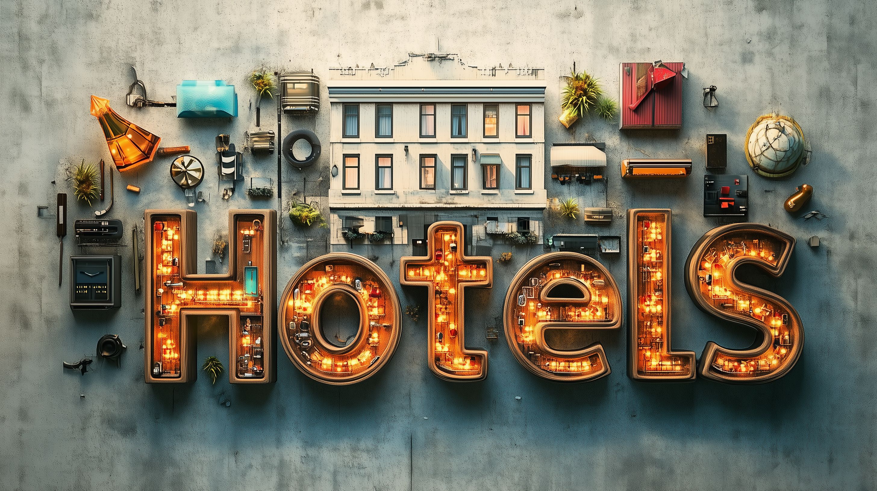Dieses Foto zeigt ein kreatives Arrangement von verschiedenen Licht- und Dekorationselementen, die das Wort 'HOTELS' bilden. Vor einer grauen Fassade leuchten die einzelnen Buchstaben und Symbole in warmen Orangetönen, was einen stimmungsvollen und dekorativen Eindruck erweckt. Das Arrangement vermittelt eine vintage-artige, urbane Atmosphäre und könnte für Werbezwecke, in Magazinen oder auf Social-Media-Kanälen eingesetzt werden. Als kostenloses Stockfoto in hoher Auflösung und unter einer Creative-Commons-Lizenz eignet es sich ideal für vielfältige Gestaltungszwecke.