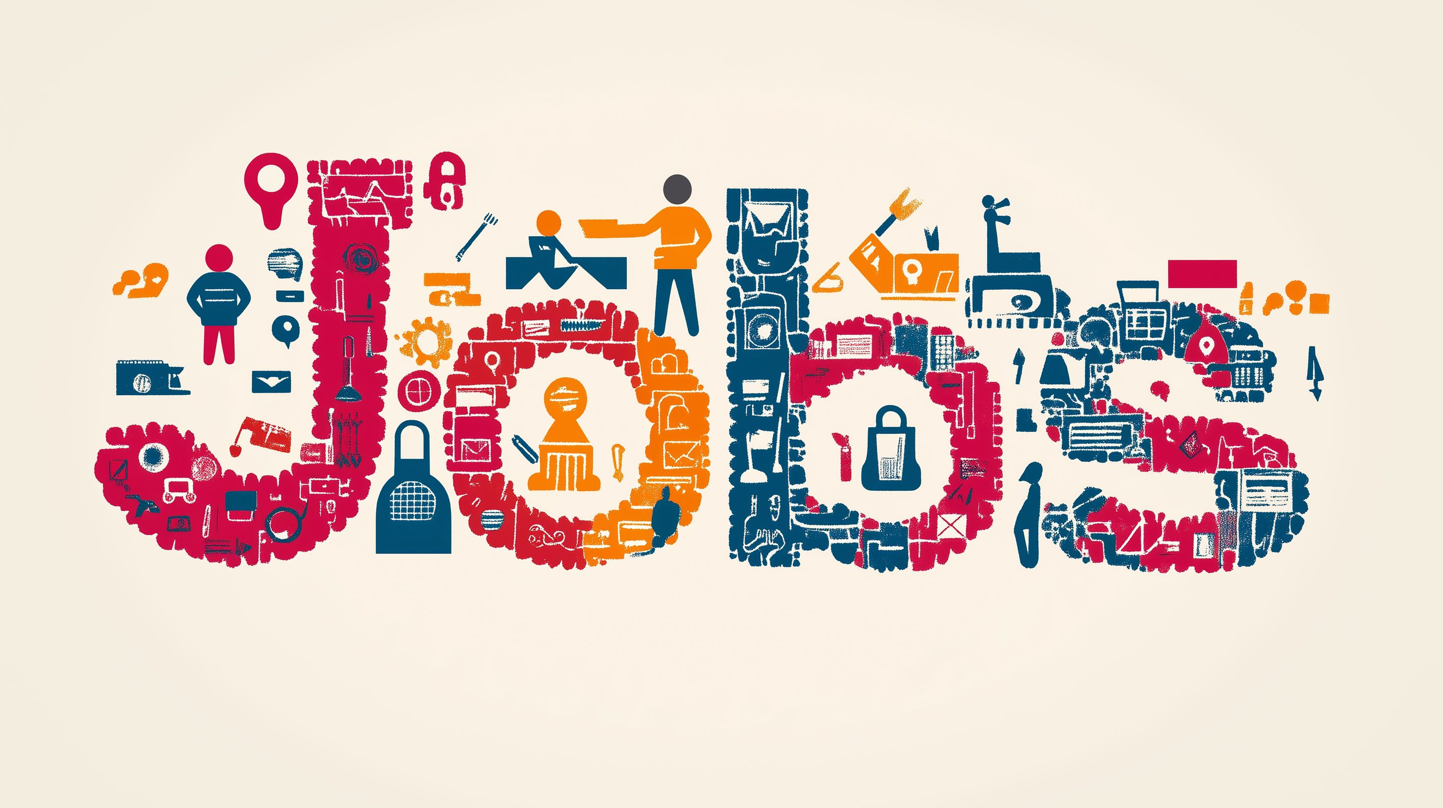 Dieses bunte und symbolreiche Bild vermittelt die Vielfalt und Dynamik der modernen Arbeitswelt. Es zeigt eine Fülle verschiedenster Symbole und Ikonen, die für unterschiedliche Berufe, Tätigkeiten und Konzepte stehen - von traditionellen Handwerksberufen bis hin zu innovativen Technologiejobs. Die Anordnung der Elemente in Form des Wortes 'Jobs' unterstreicht den Fokus auf Karriere, Beschäftigung und Erwerbstätigkeit. Die leuchtenden Farben, die abstrakten Formen und die detailreiche Gestaltung machen dieses Stockfoto zu einem spannenden, modernen und inspirierenden Motiv, das sich hervorragend für den Einsatz in Blogs, Newslettern, Social-Media-Beiträgen oder Werbematerialien rund um das Thema Arbeit und Beruf eignet. Das hochaufgelöste Bild steht unter einer Creative-Commons-Lizenz zum kostenlosen Download zur Verfügung.