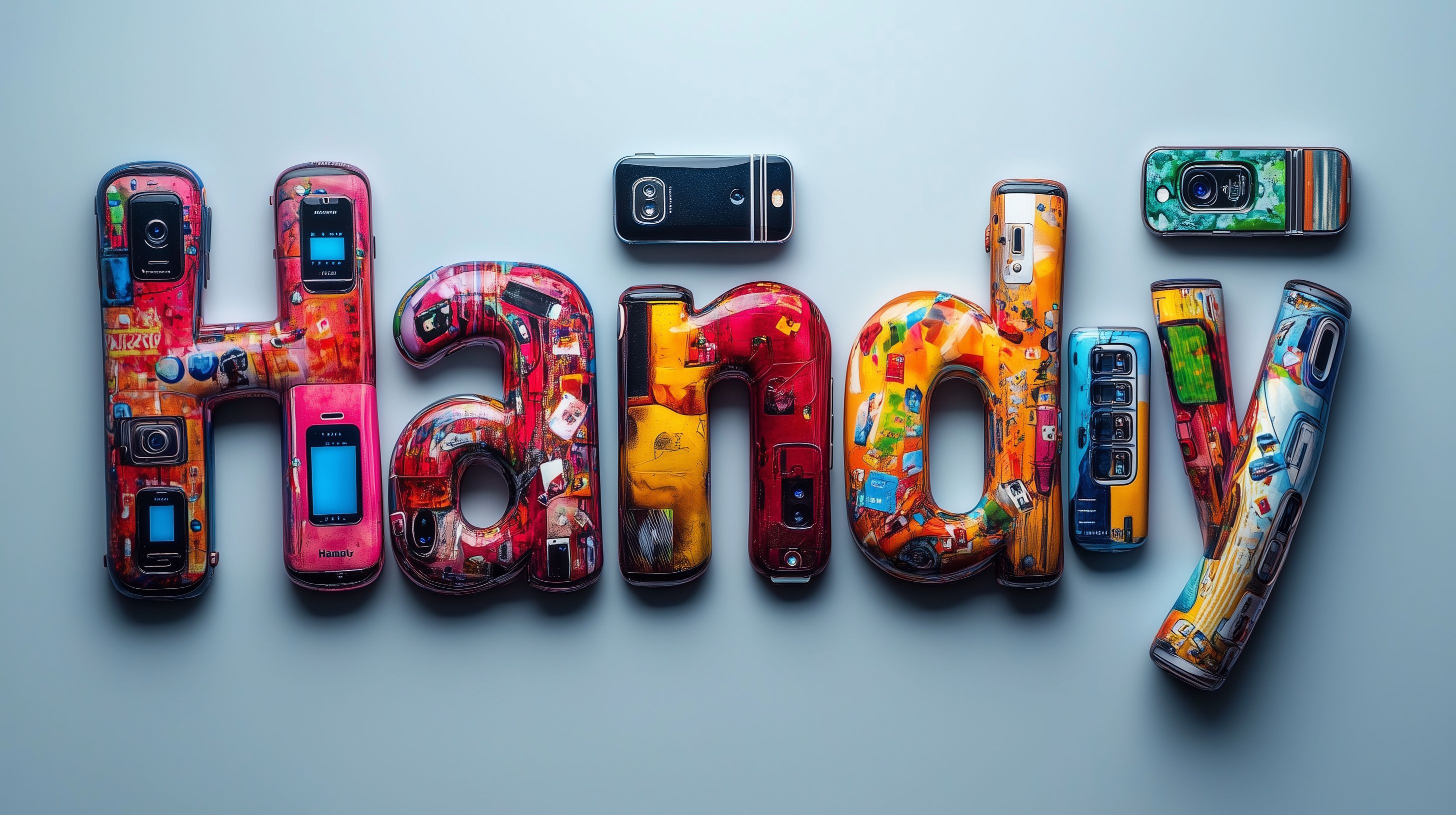 Dieses kreative Foto zeigt das Wort 'Handy' aus bunten, zusammengesetzten Mobiltelefonen. Die Anordnung der verschiedenen Smartphone-Teile in leuchtenden Farben wie Rot, Orange und Grün ergibt ein einzigartiges, grafisches Bild. Das Foto eignet sich hervorragend als Hintergrund oder Gestaltungselement für Werbekampagnen, Social-Media-Posts oder andere visuelle Inhalte rund um das Thema Mobiltelefonie und moderne Kommunikationstechnologie. Das Stockfoto ist in hoher Auflösung verfügbar und kann unter der Creative-Commons-Lizenz kostenfrei genutzt werden.