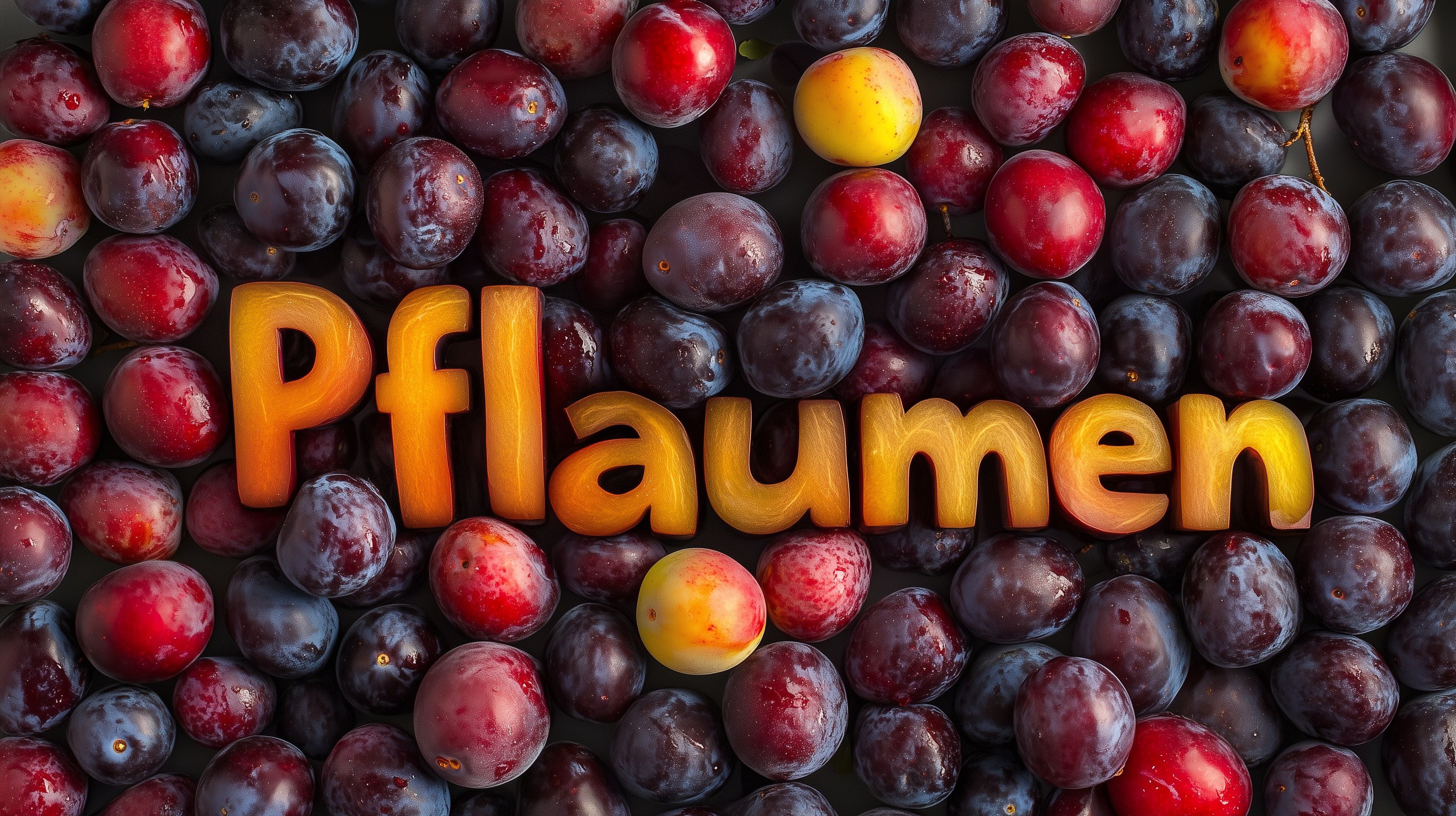 Dieses Foto zeigt eine üppige Komposition reifer, glänzender Pflaumenfrucht. Die Früchte sind in verschiedenen Rot- und Violetttönen angeordnet und heben sich farblich von dem gelben Schriftzug 'Pflaumen' ab. Das Layout lässt einen Fokus auf die Textur und Farben der Früchte entstehen, die in natürlicher Weise Appetit anregen. Dieses hochauflösende Stockfoto eignet sich hervorragend für die Verwendung in Blogbeiträgen, Newsletter-Designs, Social-Media-Posts oder Werbematerialien zum Thema Ernährung, Landwirtschaft, Saisonalität und gesunde Lebensweise. Das Bild steht unter einer Creative-Commons-Lizenz zur freien Verwendung zur Verfügung.