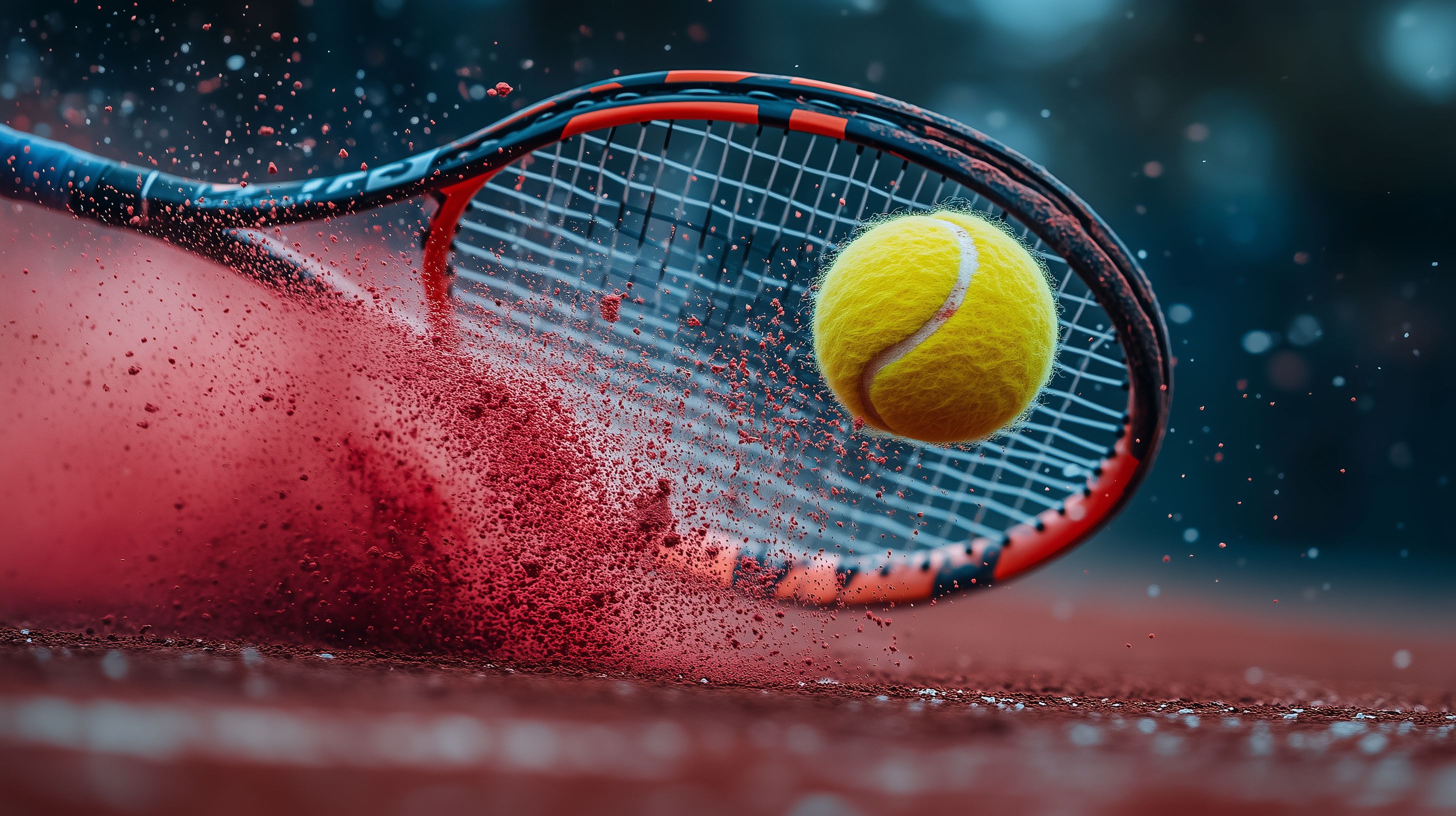 Dieses Foto zeigt einen Tennisball, der in Zeitlupe auf einen roten Tennisschläger aufprallt. Der Aufprall erzeugt eine Explosion aus Wasser- und Spielstofftropfen, die den Bewegungsablauf dramatisch unterstreichen. Die Komposition mit dem Tennisball im Fokus und dem unscharfen Hintergrund lenkt den Blick des Betrachters gezielt auf das Geschehen. Dieses Stockfoto in hoher Auflösung eignet sich hervorragend für Sportberichte, Sportartikelwerbung oder die Gestaltung von Blogbeiträgen und Social-Media-Inhalten zum Thema Tennis. Das Bild steht unter einer Creative-Commons-Lizenz zur kostenfreien Nutzung zur Verfügung.