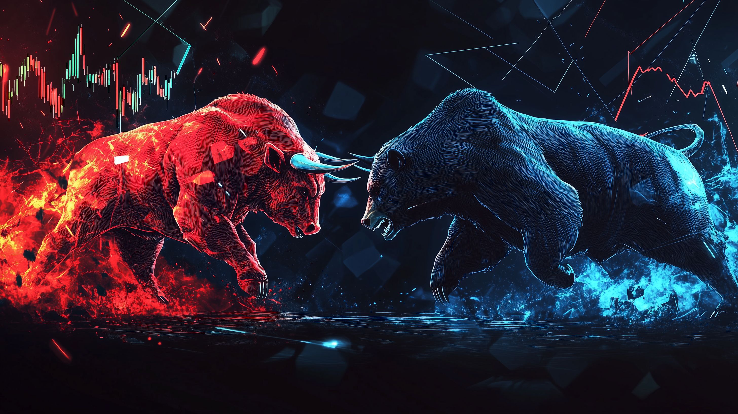 Dieses dynamische Stockfoto zeigt eine grafische Illustration zweier Symboltiere, die den Bullen- und Bärenmarkt im Finanzsektor darstellen. In intensiven Rot- und Blautönen aufgeladen, vermittelt die Szene die Stimmung und Emotionen der Börsenteilnehmer, wenn Kurse stark steigen oder fallen. Das Bild eignet sich hervorragend für Artikel, Blogs oder Social-Media-Beiträge rund um Themen wie Börse, Aktien, Wirtschaft und Finanzen. Dieses hochauflösende Stockfoto steht unter einer Creative-Commons-Lizenz kostenfrei zur Verfügung.