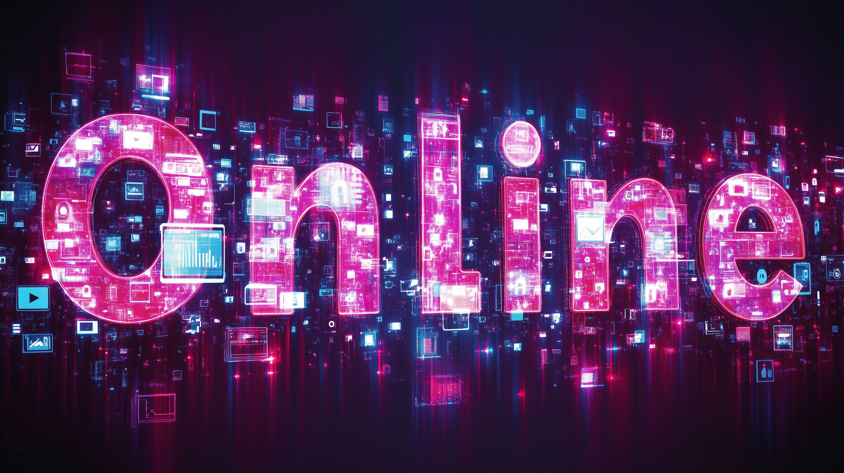 Dieses faszinierende Foto zeigt eine abstrakte, futuristische Stadtlandschaft, die völlig aus leuchtenden digitalen Symbolen und Grafiken zu bestehen scheint. Die bunte, cyberpunk-artige Ästhetik ist von dunklem Hintergrund umgeben und vermittelt einen Eindruck von Technologie, Fortschritt und Digitalität. Die geometrischen Formen, Lichter und Texturen wirken hochmodern und machen das Bild zu einem visuell beeindruckenden Kunstwerk. Diese Fotografie eignet sich ideal als kostenfreies Stockfoto für Blogs, Newsletter, Social-Media-Beiträge oder Werbematerialien im Bereich Technologie, Grafik-Design oder Zukunftsvisionen.