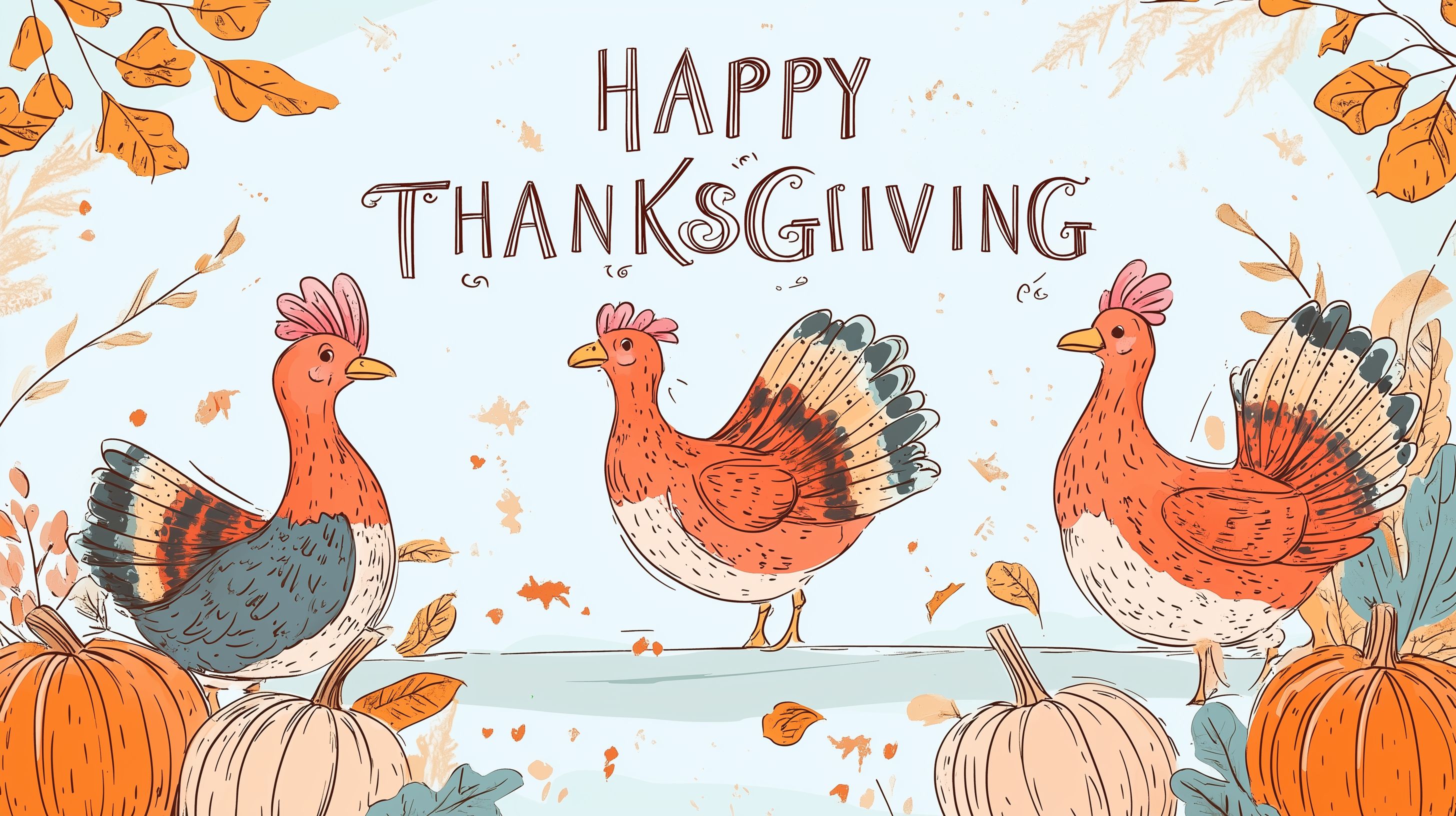 Dieses wunderschöne Illustration zeigt eine ländliche Thanksgiving-Feier mit Hühnern und Kürbissen vor einer herbstlichen Kulisse. Die Hühner sind in leuchtenden Orangetönen dargestellt und fügen sich harmonisch in die Naturmaterialien und Blätter ein. Das Bild strahlt Gemütlichkeit und Tradition aus und eignet sich hervorragend für Thanksgiving-Grußkarten, Dekorationen oder Illustrationen in Zeitschriften und Blogbeiträgen zum Erntedankfest. Als kostenloses Stockfoto in hoher Auflösung und unter Creative-Commons-Lizenz kann es flexibel eingesetzt werden.