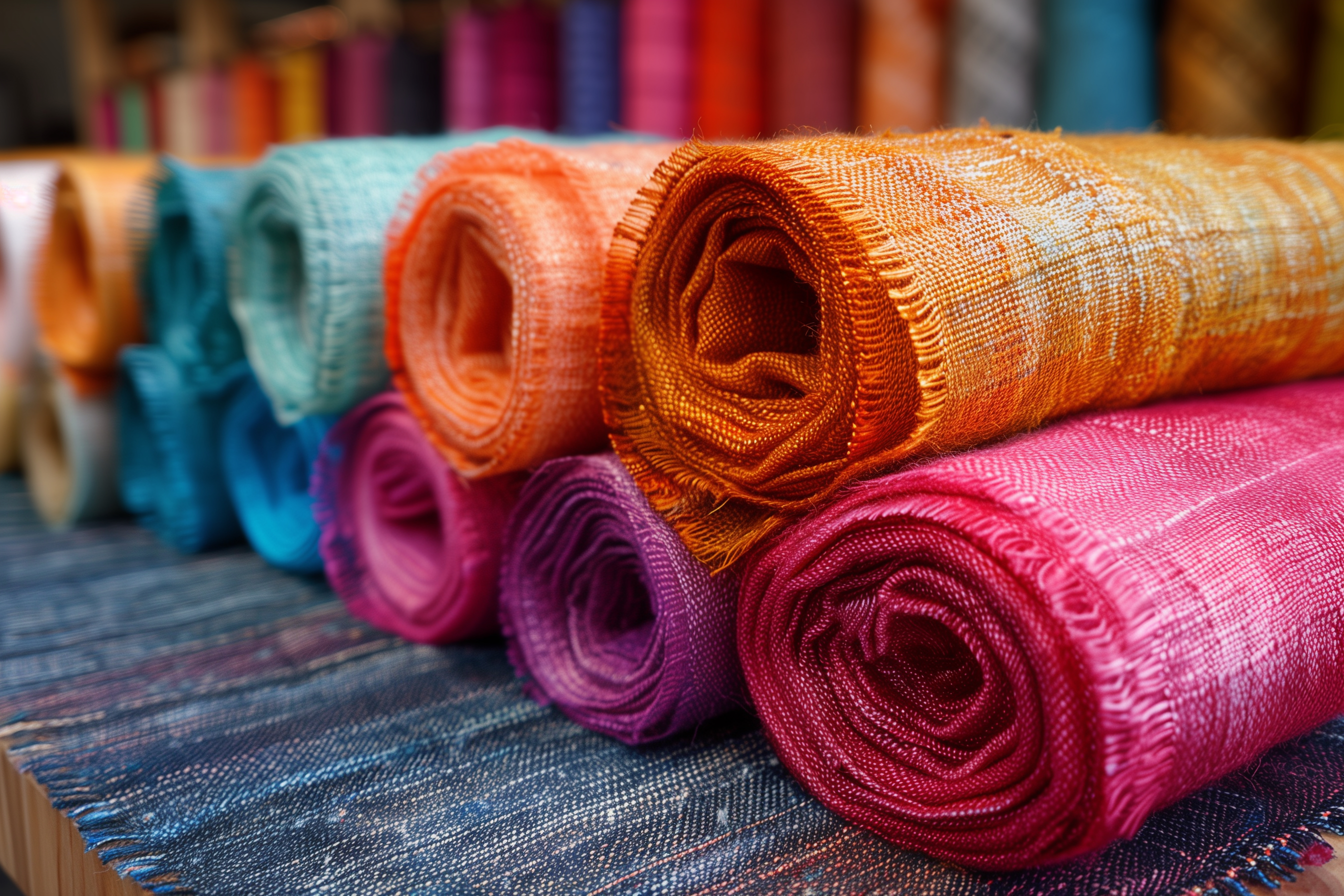 Das Bild zeigt eine Reihe von bunten Stoffrollen in einem Stoffladen oder Textilgeschäft. Die Rollen sind in verschiedenen leuchtenden Farbtönen wie Orange, Pink und Türkis aufgestapelt. Die Stoffmuster sind vielfältig und reichen von einfarbigen Strukturen bis hin zu gemusterten Geweben. Die Komposition vermittelt einen Eindruck von Vielfalt, Kreativität und Inspiration für Hobbynäher, Dekorateure oder Designschaffende. Dieses kostenlose Stockfoto in hoher Auflösung steht unter einer Creative-Commons-Lizenz zur Verfügung und kann für eine Vielzahl von Anwendungen wie Blogbeiträge, Social-Media-Posts oder Werbematerialien genutzt werden.