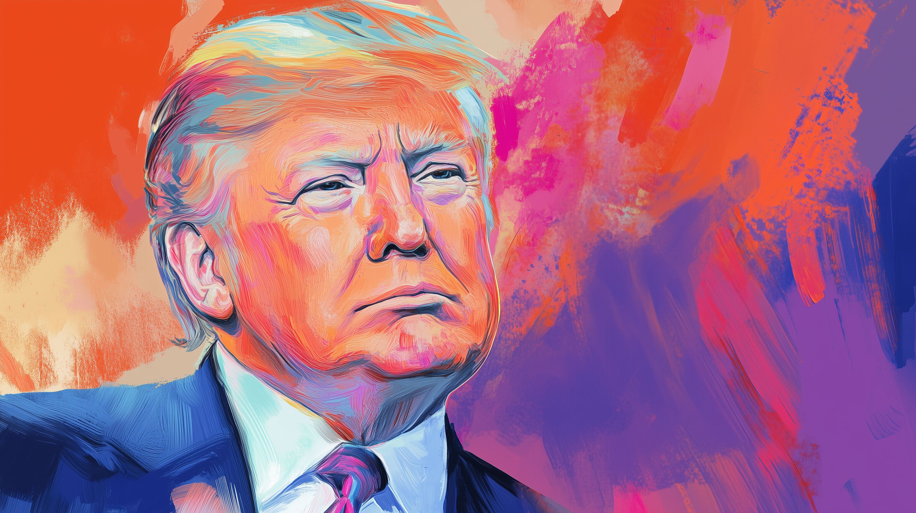 Dieses bunte, expressionistische Porträt zeigt den ehemaligen US-Präsidenten Donald Trump in einem abstrakten, farbintensiven Stil. Die Illustration wurde digital erstellt und zeichnet sich durch den Einsatz kräftiger, kontrastreicher Farbtöne aus, die dem Motiv einen einzigartigen, auffälligen Charakter verleihen. Das Bild eignet sich hervorragend als Eyecatcher für Blogs, Social-Media-Beiträge, Newsletter oder Werbematerialien mit einem politischen oder kontroversen Thema. Als kostenloses Stockfoto in hoher Auflösung und unter einer Creative-Commons-Lizenz ist es frei verwendbar.