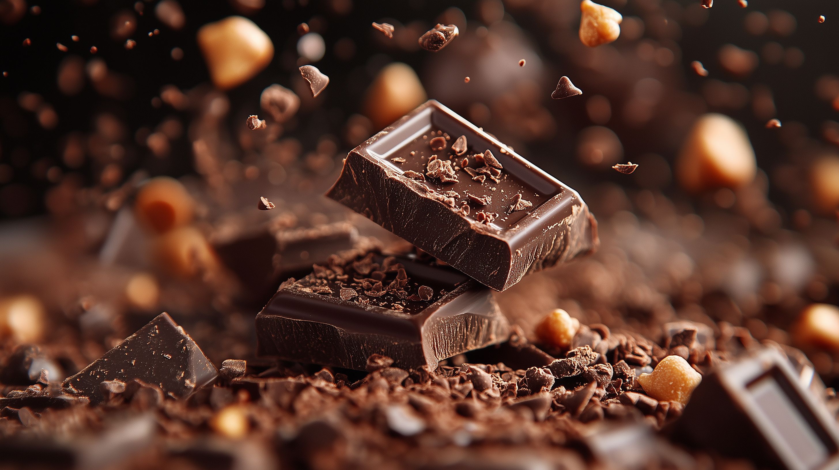 Dieses Foto zeigt eine delikate Komposition aus hochwertiger dunkler Schokolade, die von Nüssen und Kakaosplittern umgeben ist. Die Schokoladenstücke scheinen in Bewegung zu sein, was dem Bild eine dynamische und appetitliche Ausstrahlung verleiht. Die dunkle Farbe der Schokolade kontrastiert wunderschön mit den knackigen, goldbraunen Nüssen und den feinen Kakaokrümeln. Dieses Motiv eignet sich hervorragend für Verpackungsdesigns, Werbekampagnen, Blogbeiträge oder Social-Media-Posts rund um Schokolade, Genuss und hochwertige Lebensmittel. Das kostenlose Stockfoto in hoher Auflösung steht unter einer Creative-Commons-Lizenz zur freien Verwendung zur Verfügung.