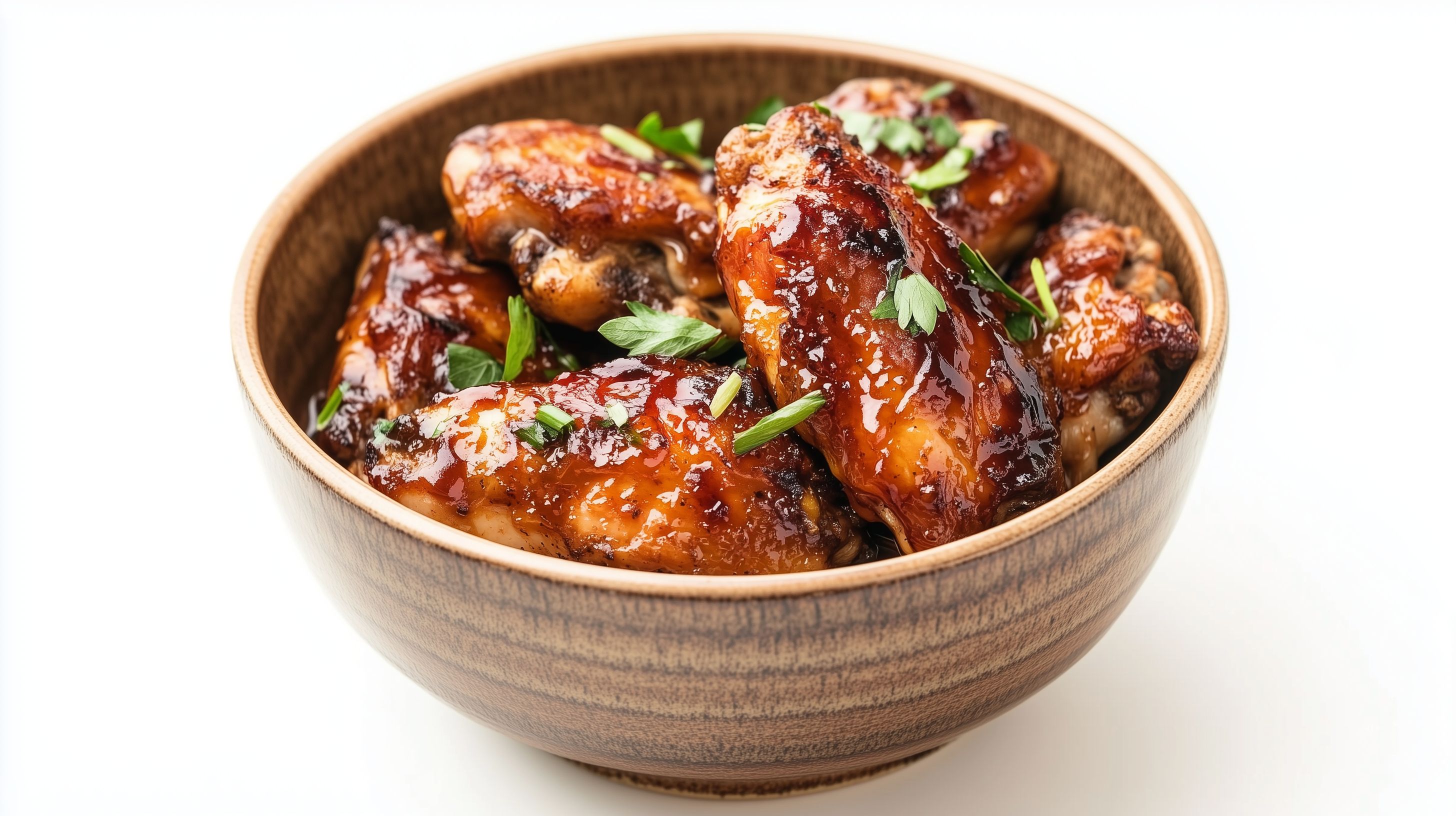 Dieses Stockfoto zeigt eine Schüssel mit würzigen und karamellisierten Hähnchenkeulen. Das Fleisch ist goldbraun gebraten und mit einer klebrigen, süß-würzigen Glasur überzogen. Die Hähnchenstücke liegen in einer rustikalen Holzschale, die den Kontrast zwischen dem dunklen Holz und der hellen Soße hervorhebt. Das Bild ist mit Textfreiraum aufgenommen, sodass es ideal für Verwendungen in Blogs, Newslettern, Social-Media-Posts oder Werbung geeignet ist. Als hochauflösendes, kostenloses Stockfoto unter der Creative-Commons-Lizenz kann es frei genutzt werden.