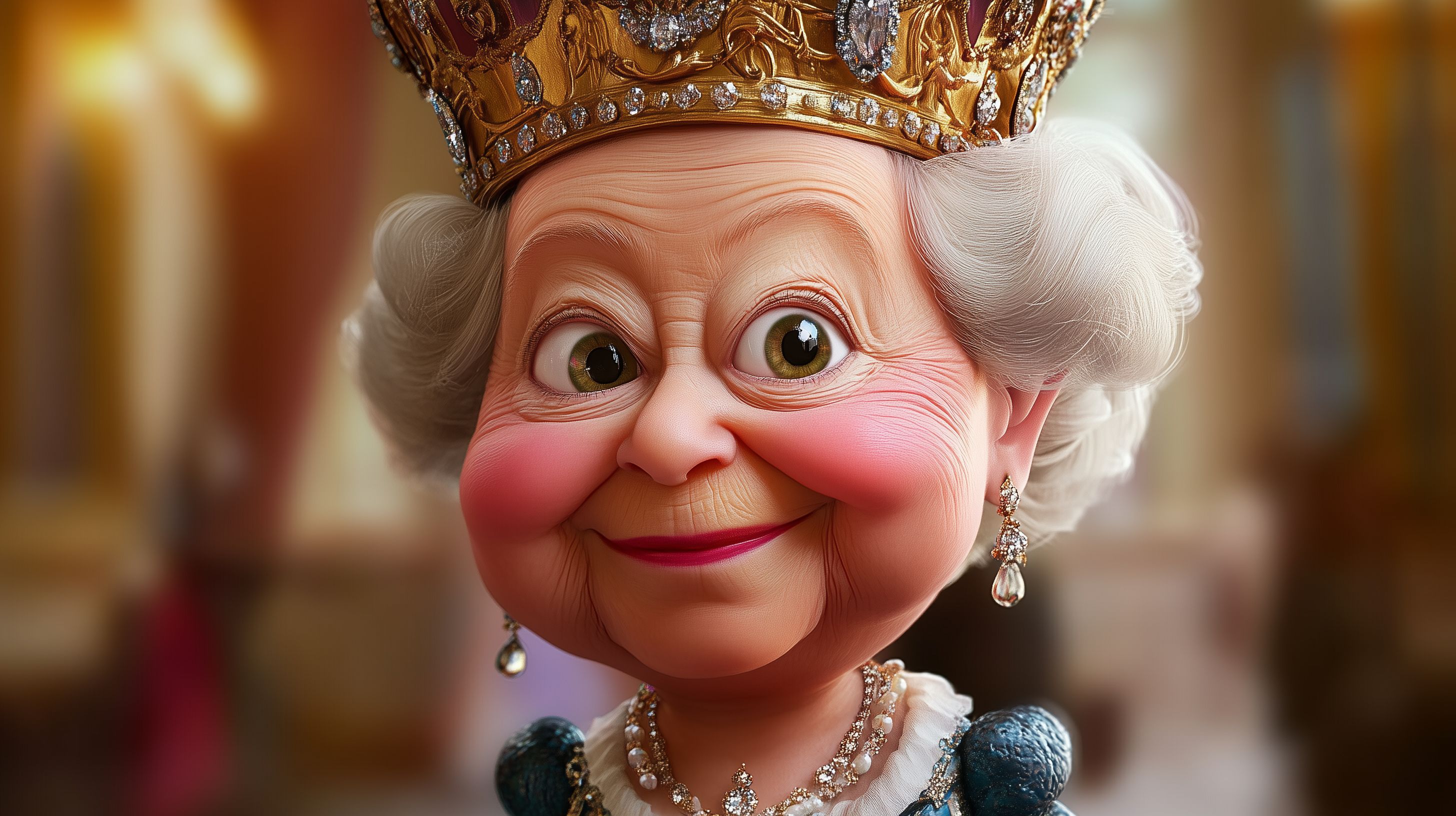 Dieses lustige und detailreiche Porträt-Karikatur zeigt die britische Königin Elizabeth II. in einer sehr dekorativen und märchenhaften Art. Sie trägt eine prachtvolle, mit Edelsteinen besetzte Krone und ist mit aufwändigem Schmuck wie Halskette, Ohrringen und Armband verziert. Ihre freundlich-verschmitzte Mimik sowie die realistische Ausarbeitung verleihen dem Motiv einen humorvollen, aber respektvollen Charakter. Das Foto eignet sich hervorragend als kostenloses Stockfoto für Blog-Beiträge, Newsletter oder Social-Media-Postings zu Themen wie Monarchie, Königshaus, Tradition oder historische Persönlichkeiten. Die hochauflösende Datei steht unter einer Creative-Commons-Lizenz zur Verfügung.