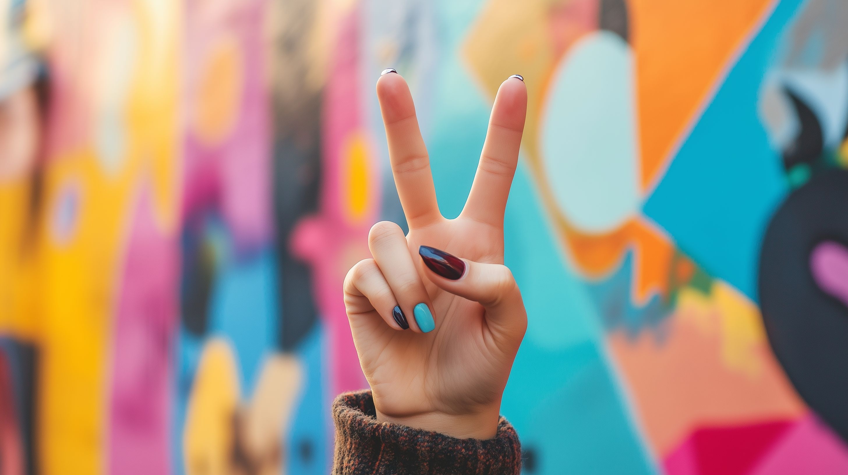 Das Bild zeigt eine Draufsicht auf eine Hand, die das Friedenszeichen, auch bekannt als V-Geste, vor einer farbenfrohen, besprühten Wand formt. Die Hintergrundwand ist mit einer Vielzahl bunter Graffiti-Elemente gestaltet, die einen kreativen und lebendigen Kontrast zur reduzierten Geste im Vordergrund bilden. Die Geste drückt Frieden, Solidarität und Aktivismus aus und lässt den Betrachter an Proteste, Demonstrationen oder andere gesellschaftsrelevante Themen denken. Dieses kostenlose, hochauflösende Stockfoto ist unter der Creative-Commons-Lizenz verfügbar und eignet sich hervorragend für den Einsatz in Blogbeiträgen, Newslettern, Social-Media-Kanälen oder Werbematerialien, die Themen wie Kreativität, Individualität oder soziales Engagement ansprechen.