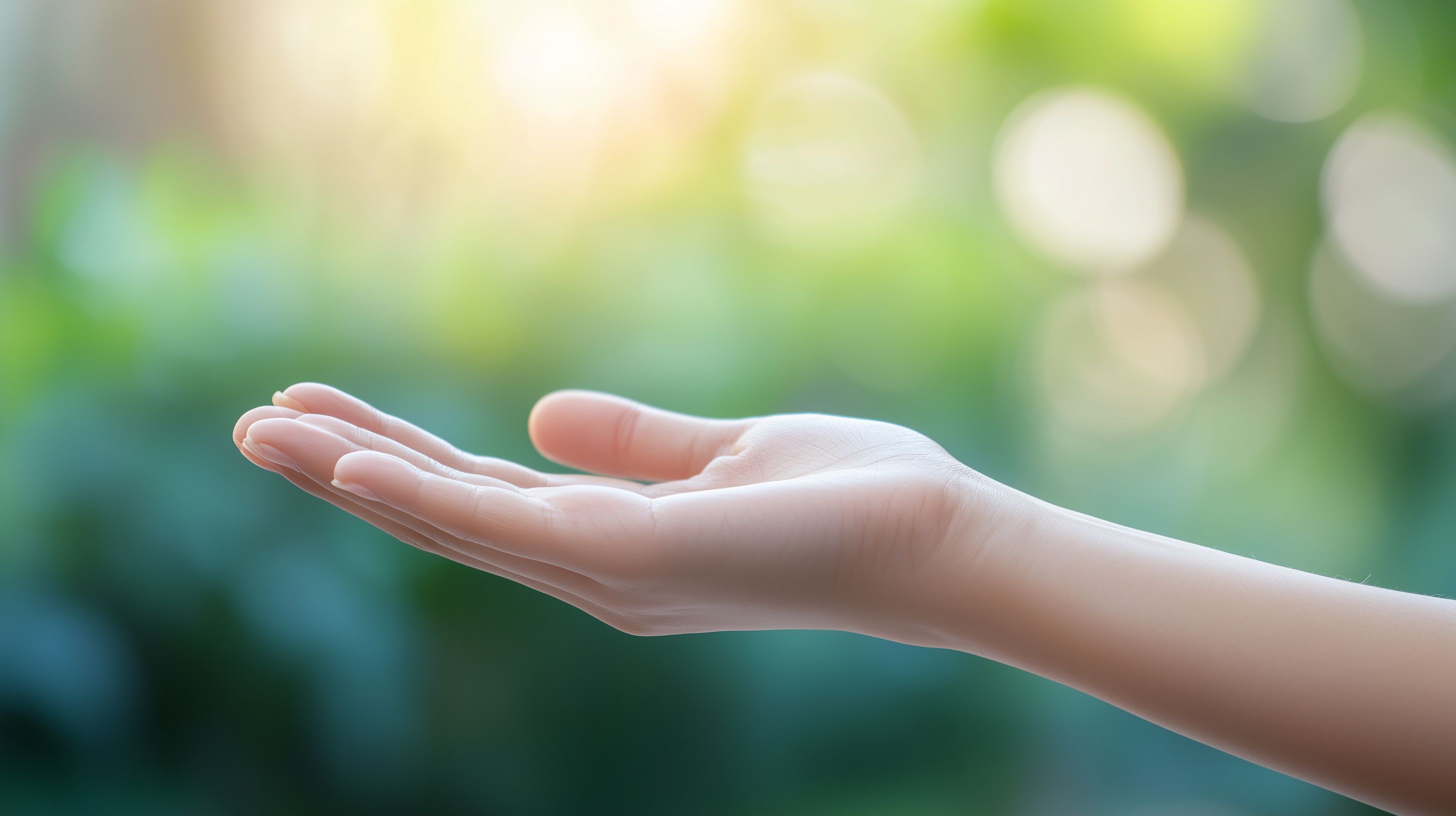 Dieses hochauflösende Stockfoto zeigt eine offene, ausgestreckte Handfläche vor einem unscharfen, grünen Hintergrund. Die Perspektive und Komposition lassen viel Platz für das Einfügen von Text oder Symbolen, sodass das Bild sich hervorragend für Werbe-, Marketing- oder Designzwecke eignet. Das Foto ist unter einer kostenlosen Creative-Commons-Lizenz erhältlich und kann in Blogs, Newslettern oder sozialen Medien verwendet werden.