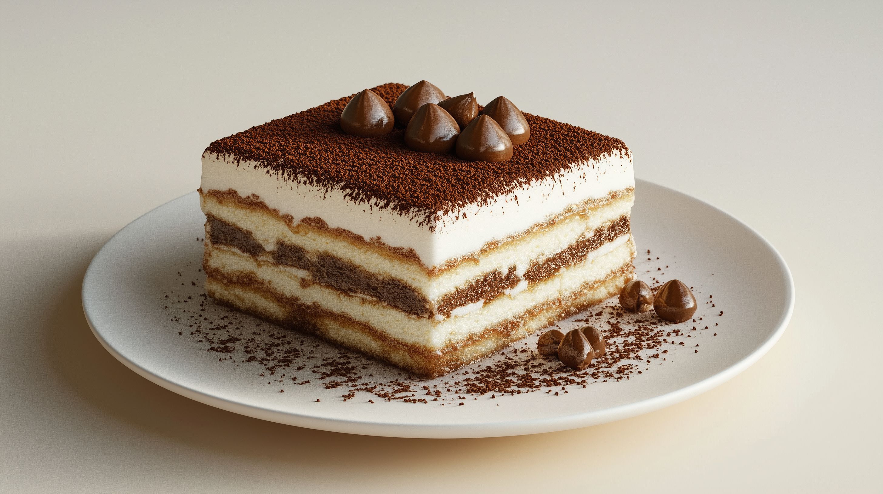 Dieses Foto zeigt ein köstliches Stück Tiramisu-Kuchen. Der Kuchen ist sorgfältig mit einer cremigen Sahne-Creme gefüllt und mit einer Schicht feiner, glänzender Schokolade überzogen. Darauf sind kleine Schokoladenspitzen als Dekoration platziert. Der Kuchen hat eine elegant-schlichte Optik und wirkt sehr einladend. Dieses hochwertige Stockfoto eignet sich hervorragend für den Einsatz in Blogs, Newslettern, Social Media-Beiträgen oder Werbematerialien zum Thema Konditorei, Patisserie oder erlesene Desserts. Das Foto ist in hoher Auflösung und unter einer Creative-Commons-Lizenz verfügbar.
