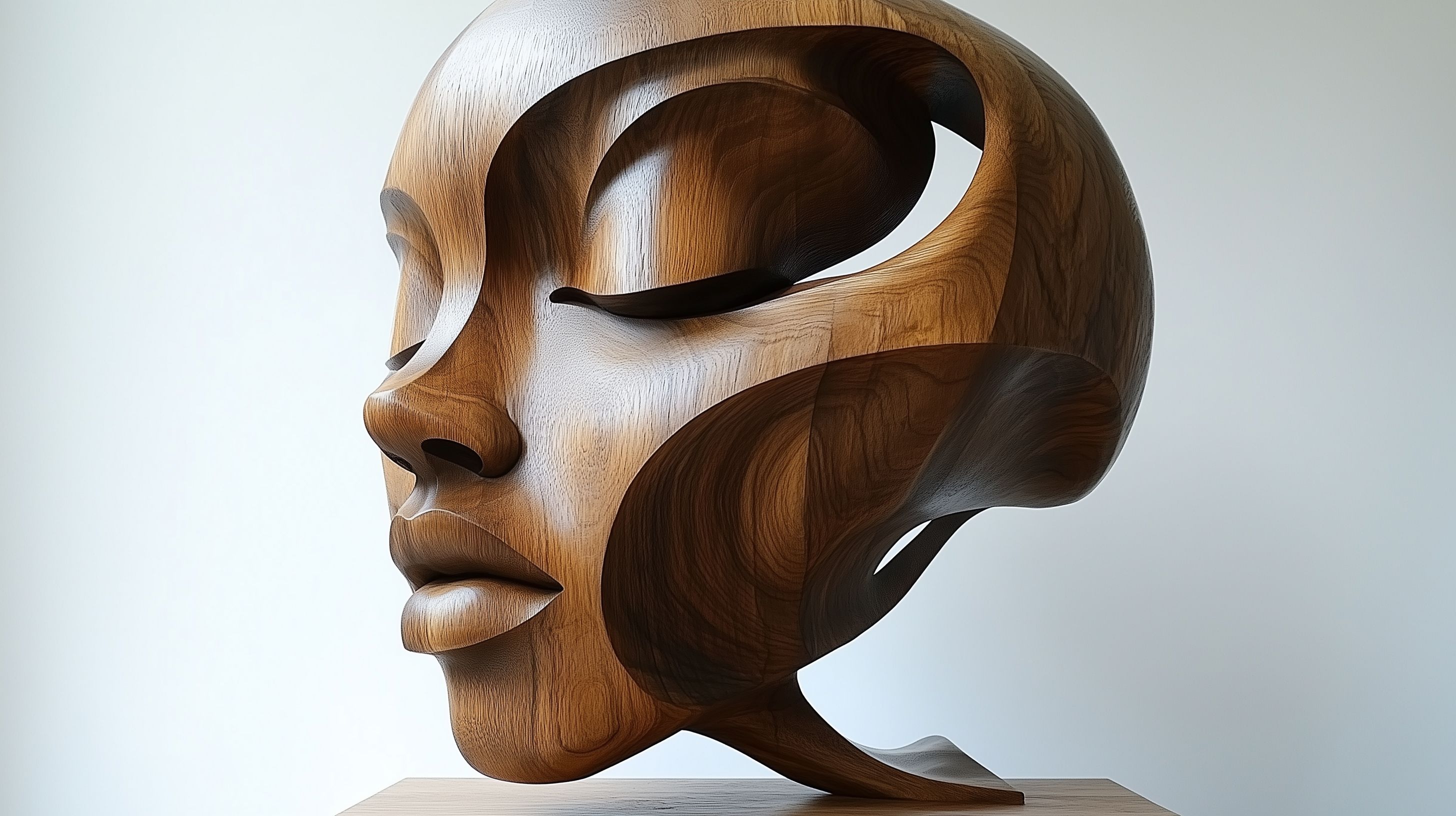 Dieses beeindruckende Bild zeigt eine abstrakte Holzskulptur eines Frauengesichts in Seitenansicht. Die organischen, fließenden Formen und Konturen der Skulptur verleihen ihr eine moderne, künstlerische Ästhetik. Die Holzstruktur und Maserung sind detailliert herausgearbeitet und schaffen eine warme, natürliche Ausstrahlung. Das Gesicht wirkt dabei reduziert, fast schon minimalistisch, und lässt viel Interpretationsspielraum für den Betrachter. Diese Skulptur wäre ein wunderbarer Blickfang in Galerien, Inneneinrichtungen oder als dekoratives Element. Als hochwertiges, kostenloses Stockfoto in hoher Auflösung und unter Creative-Commons-Lizenz ist es vielseitig einsetzbar, etwa für Blogbeiträge, Werbematerialien oder Social-Media-Posts zum Thema Kunst, Design oder Kreativität.