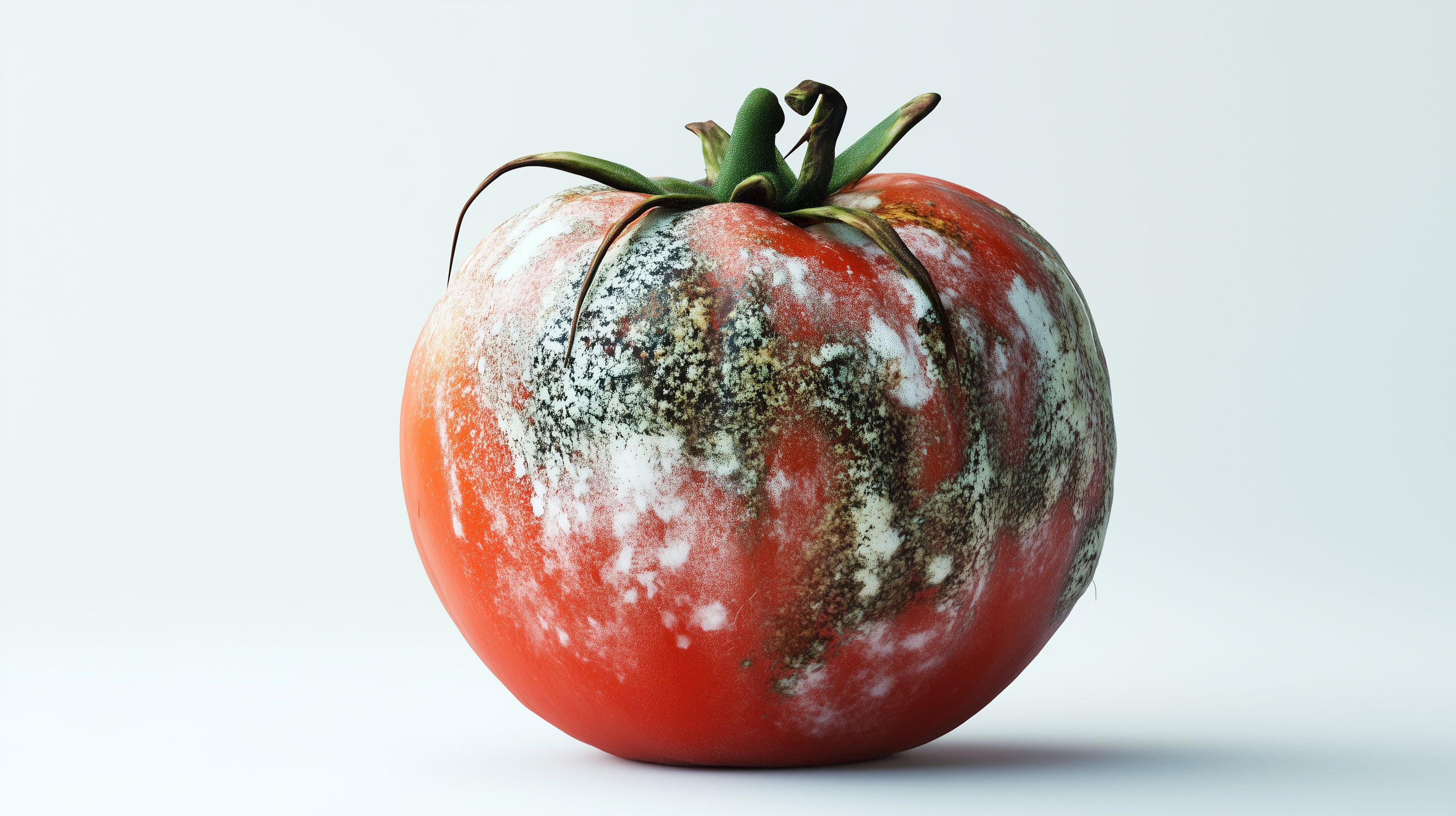 Das Foto zeigt eine verwelkte und schimmelige Tomate auf einem einfarbigen hellblauen Hintergrund. Die Tomate ist von Schimmelpilzen überwuchert und weist deutliche Verfallsspuren auf. Dieses Bild eignet sich für Blogbeiträge, Social-Media-Posts oder Werbeanzeigen zu Themen wie Nachhaltigkeit, Lebensmittelverschwendung oder Gesundheit. Als kostenloses Stockfoto in hoher Auflösung unter Creative-Commons-Lizenz kann es vielseitig genutzt werden.