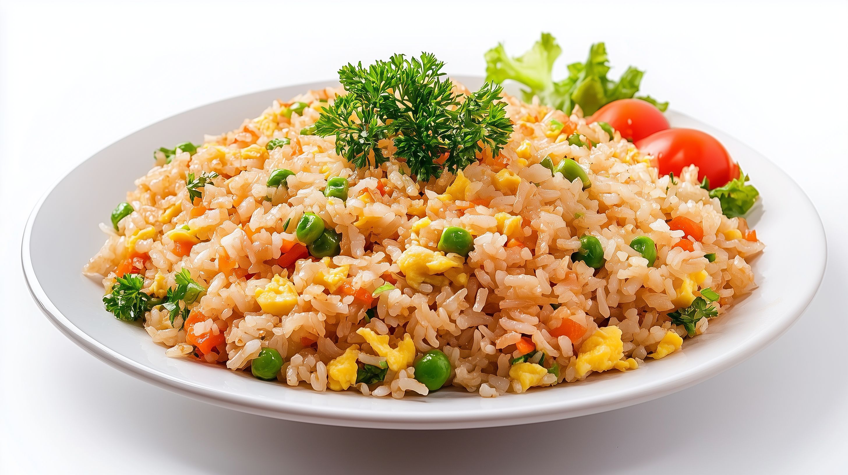 Das Foto zeigt einen appetitlichen Teller voller gebratenen Reis mit bunt gemischtem Gemüse und Ei. Der Reis ist locker und fluffig, mit feinen Würfeln von Paprika, Mais, Erbsen und anderen Zutaten durchmischt. Das Gericht ist farbenfroher Blickfang auf jedem Foto oder für Webseiten rund um Kochen, Ernährung und gesunde Lebensweise. Das hochwertige Stockfoto in hoher Auflösung ist unter der Creative-Commons-Lizenz kostenfrei für vielfältige Nutzungen verfügbar.