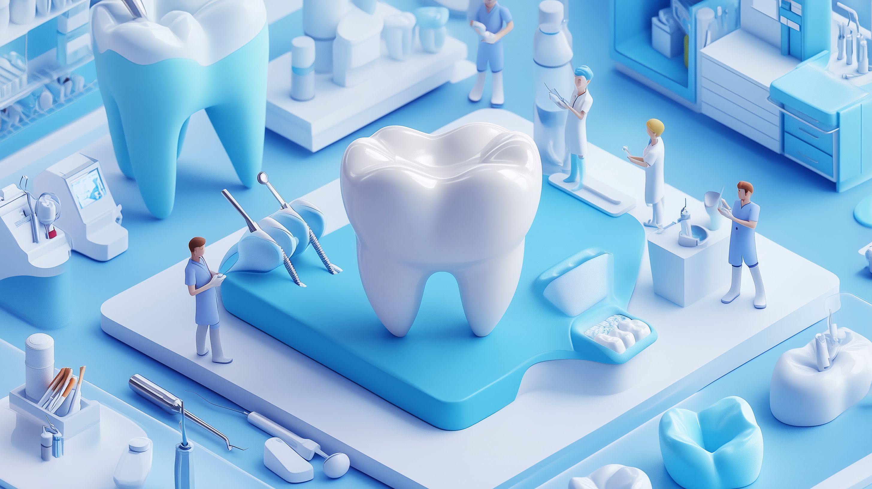 Dieses fotorealistische 3D-Bild zeigt eine moderne, klinisch wirkende Zahnarztpraxis in hellen Blau- und Weißtönen. Der Raum ist mit modernster medizinischer Ausstattung ausgestattet, wie einem großen Zahnarztsessel, Behandlungseinheiten und Dentalinstrumenten. Im Vordergrund dominiert ein übergroßer weißer Zahn als Blickfang. Das Bild vermittelt einen professionellen, sterilen Eindruck und kann ideal für Webseiten, Social-Media-Beiträge, Werbematerialien oder Newsletter rund um das Thema Zahnmedizin und Gesundheitsvorsorge eingesetzt werden. Das hochauflösende Stockfoto steht unter Creative Commons-Lizenz kostenfrei zur Verfügung.
