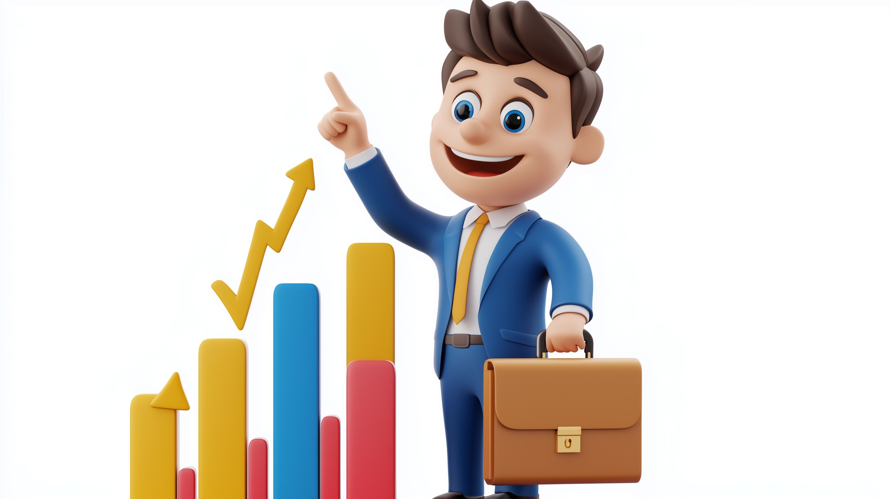 Dieses Foto zeigt einen lächelnden Mann in einem blauen Anzug, der einen Aktenkoffer in der Hand hält und auf ein steigendes Diagramm zeigt. Die 3D-Illustration vermittelt den Eindruck von Erfolg, Wachstum und Geschäftserfolg. Das Bild eignet sich hervorragend für Artikel, Blogbeiträge oder Werbematerialien zum Thema Unternehmensführung, Finanzen, Karriere und Motivation. Als kostenloses, hochauflösendes Stockfoto unter Creative-Commons-Lizenz bietet es vielfältige Einsatzmöglichkeiten in digitalen und Print-Medien.