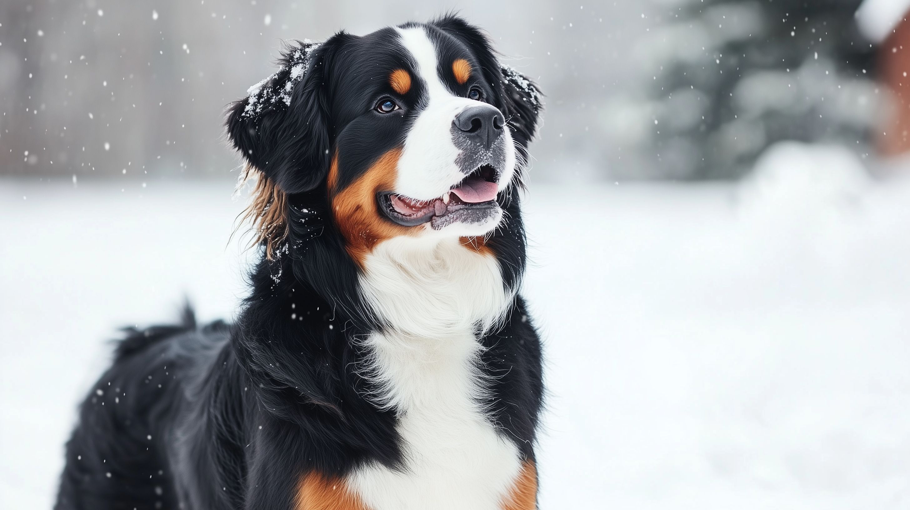 Das Bild zeigt einen Berner Sennenhund, der inmitten eines Schneesturms fröhlich in die Kamera schaut. Der Hund hat ein dichtes, schwarz-weiß-braunes Fell und einen glücklichen Gesichtsausdruck. Die Schneeflocken umgeben ihn, was eine winterliche, stimmungsvolle Atmosphäre schafft. Dieses Stockfoto eignet sich perfekt für den Einsatz in Blogs, Newslettern, sozialen Medien oder Werbekampagnen rund um das Thema Winter, Haustiere oder Tierfotografie. Es ist in hoher Auflösung und unter einer Creative-Commons-Lizenz verfügbar, sodass es kostenfrei genutzt werden kann.