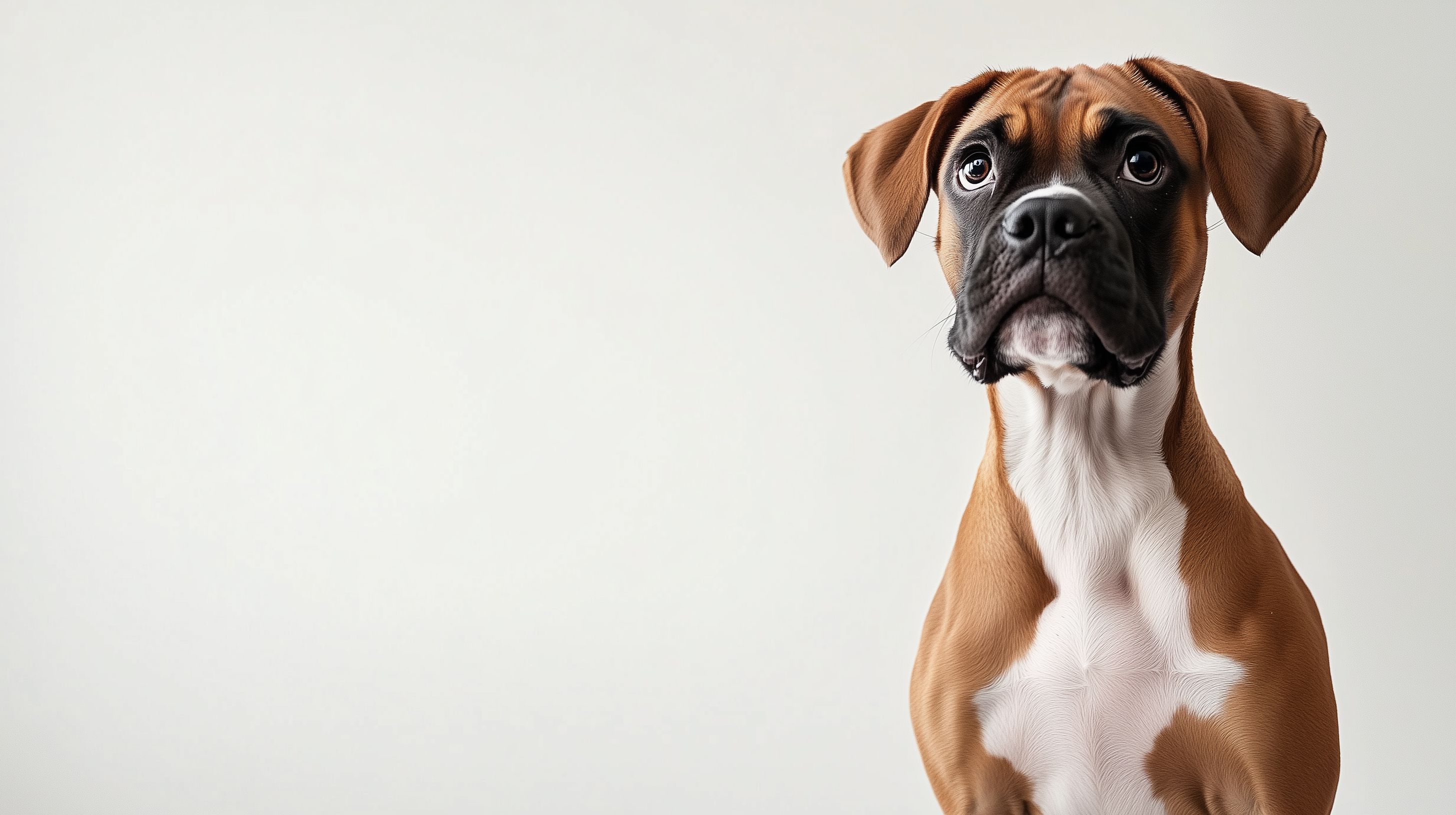 Das Bild zeigt einen Hund der Boxerrasse, der vor einem hellen, weißen Hintergrund sitzt und den Betrachter aufmerksam und loyal anschaut. Mit seinem kräftigen, muskulösen Körperbau und dem freundlichen Blick verkörpert der Hund die typischen Charakteristika dieser Hunderasse. Das Foto eignet sich hervorragend als Illustrationsart für Beiträge zu Themen rund um Haustiere, Tierfotografie oder auch als Eye-Catcher in Werbekampagnen. Als kostenfreies Stockfoto in hoher Auflösung und unter Creative-Commons-Lizenz kann es vielseitig eingesetzt werden, z.B. in Blogs, Newslettern oder sozialen Medien.