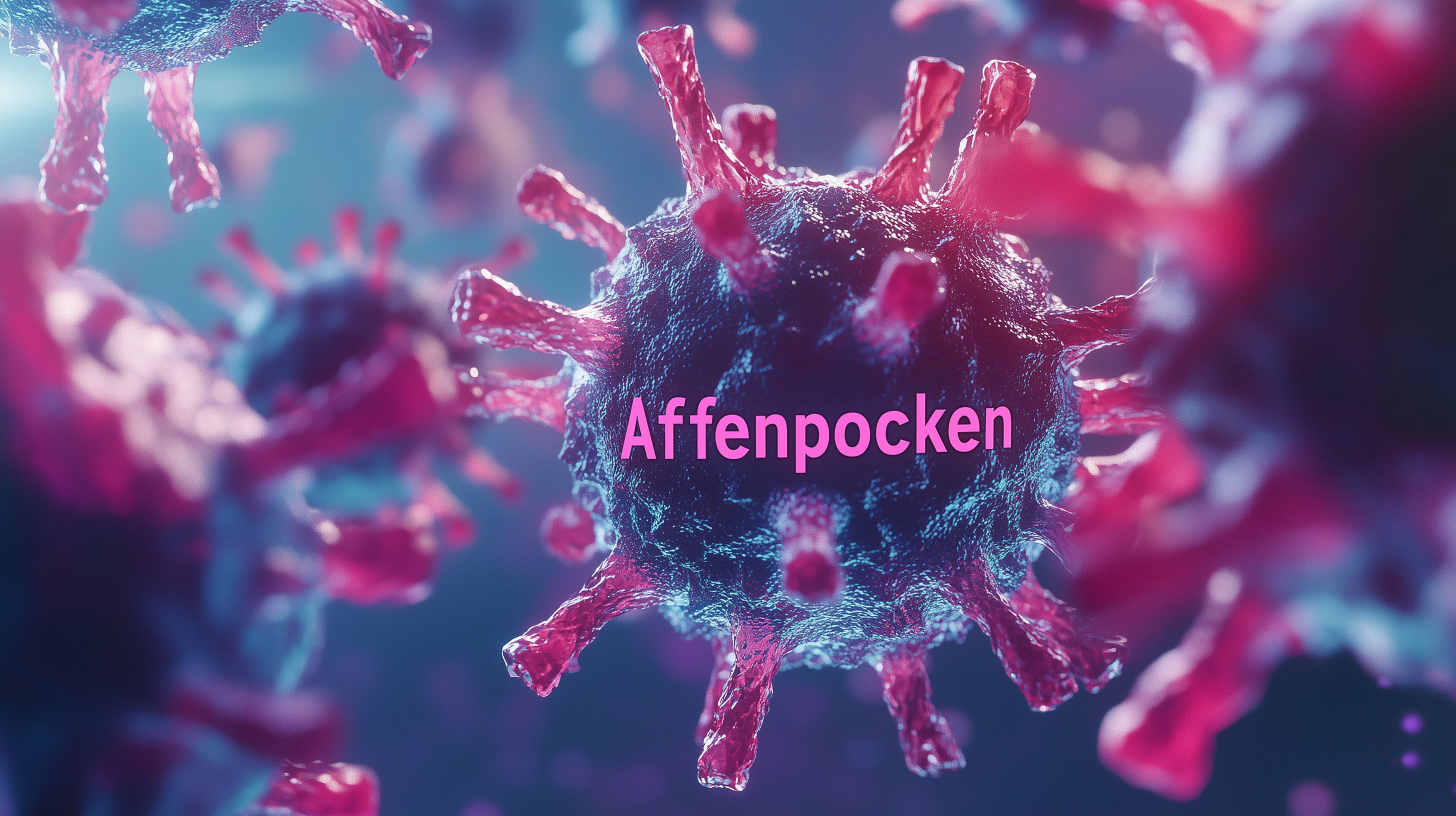 Diese detaillierte 3D-Illustration zeigt das Affenpockenvirus in leuchtenden Rot- und Blautönen. Die komplexe molekulare Struktur des Virus ist realistisch dargestellt, mit charakteristischen Oberflächenstrukturen und kleinen roten Auswüchsen. Das Bild vermittelt einen eindrucksvollen Eindruck der Mikrobiologie und Virologie dieser Krankheit, die gerade als Pandemie auftritt. Es eignet sich hervorragend als Titelbild für Artikel, Berichte oder Social-Media-Posts zu diesem Thema. Dieses hochauflösende Stockfoto ist kostenlos und unter Creative Commons-Lizenz für redaktionelle und werbliche Zwecke verfügbar.