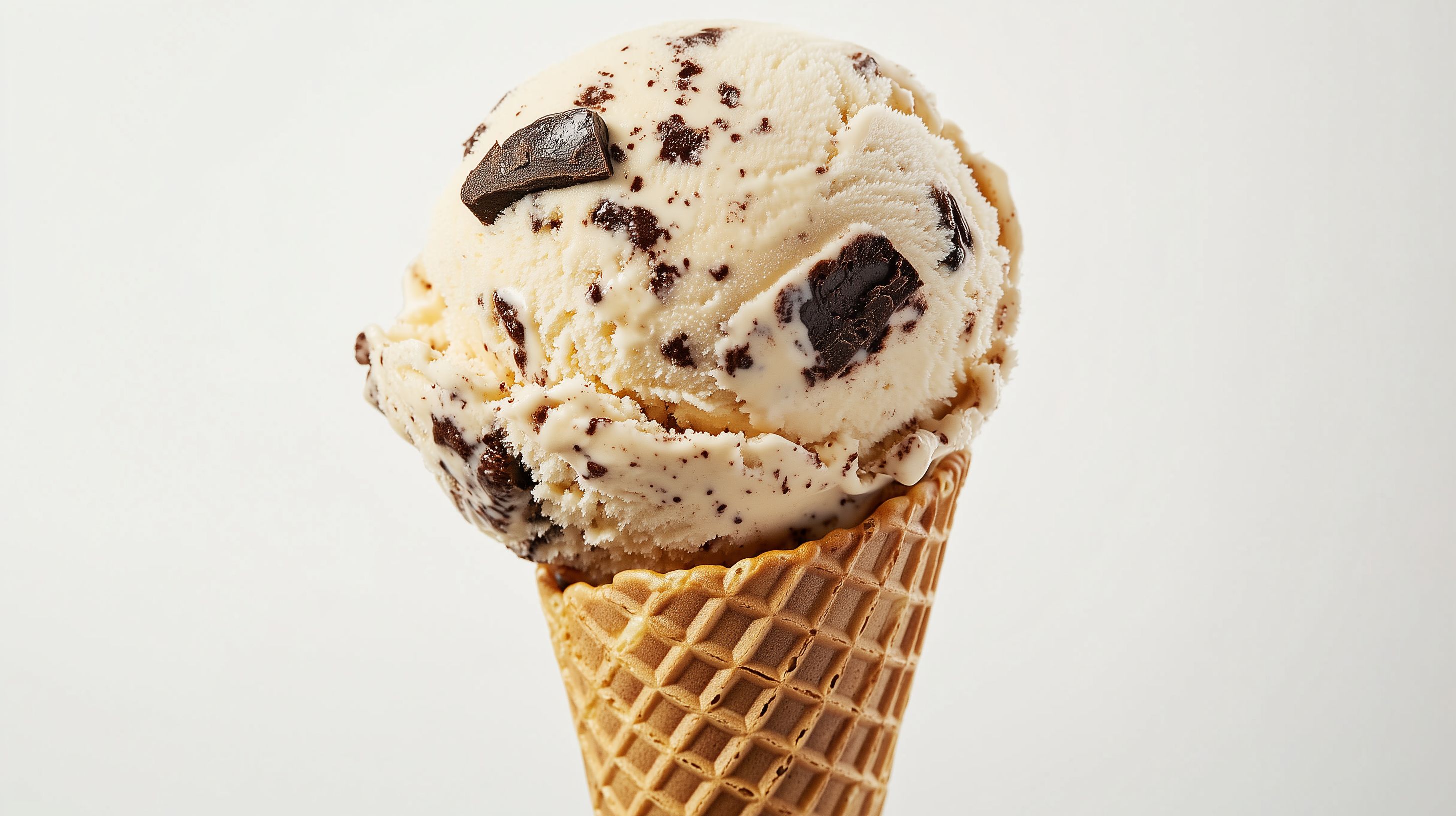 Das Bild zeigt ein köstliches Vanilleeis in einem Waffelbecher, das mit dunklen Schokoladenstückchen durchsetzt ist. Das Eis hat eine cremige, helle Farbe und die Schokoladenstückchen bieten einen schönen Kontrast dazu. Der Waffelbecher hat eine knusprige, goldbraune Oberfläche und verleiht dem Dessert eine leckere, stimmungsvolle Optik. Dieses Foto eignet sich hervorragend als Stockfoto für Blogs, Newsletter, Social-Media-Posts oder Werbematerial rund um das Thema Eis und Süßspeisen. Es ist in hoher Auflösung und unter einer Creative-Commons-Lizenz verfügbar.