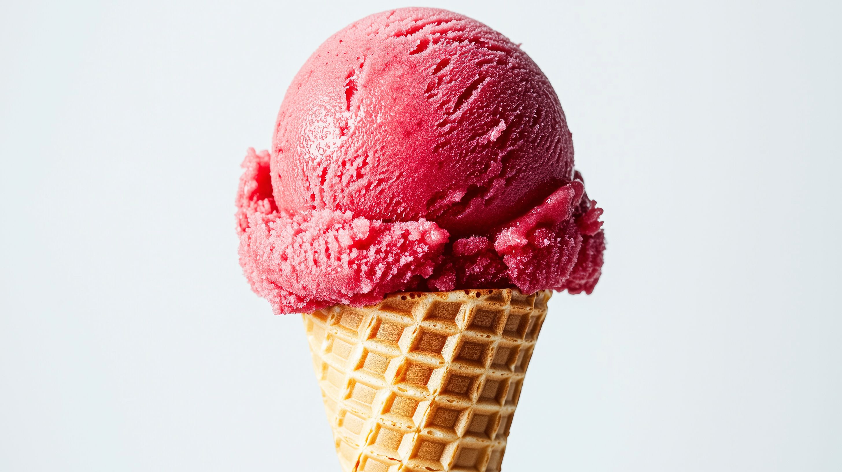 Dieses Bild zeigt einen Himbeersorbet in einer knusprigen Waffelschale. Der Sorbet hat eine intensive, rosafarbe Färbung und eine cremige Textur. Die Waffelschale verleiht ihm einen knusprigen Kontrast. Das Foto wurde aus leicht erhöhter Perspektive aufgenommen, wodurch die Struktur und Farben des Sorbets besonders schön zur Geltung kommen. Dieses Stockfoto eignet sich hervorragend für Lebensmittel-, Dessert- oder Sommerrezeptbeiträge in Blogs, Social-Media-Kanälen oder Werbekampagnen. Es ist in hoher Auflösung und unter der Creative-Commons-Lizenz kostenfrei verfügbar.