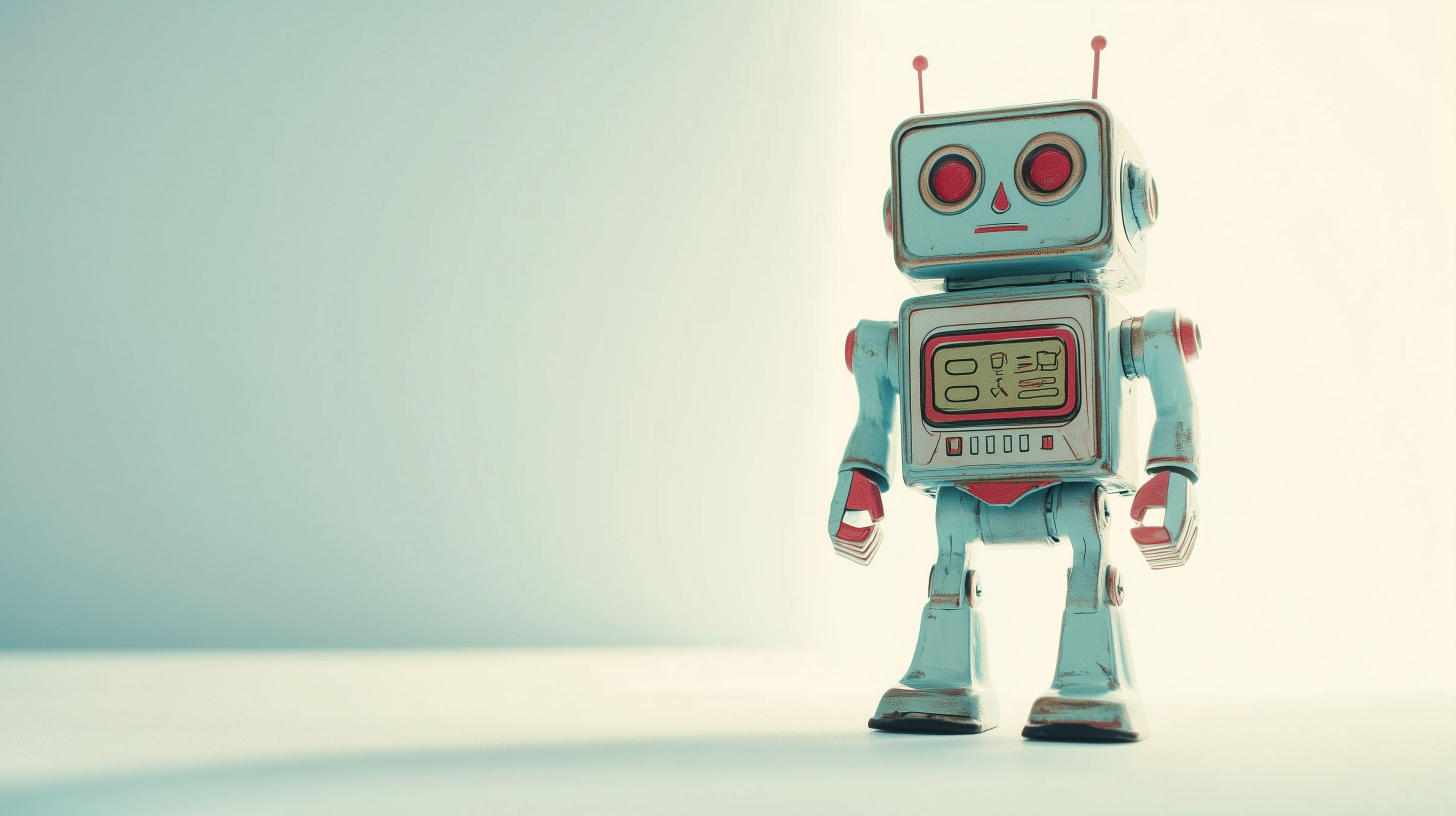 Dieses stimmungsvolle Foto zeigt einen klassischen Retro-Roboter in einem pastelligen Farbschema. Der Roboter besitzt einen markanten, kantigen Look mit roten Augen und Tasten. Er steht vor einem hellen, neutralen Hintergrund, der den Fokus auf die detailreiche Figur lenkt. Dieses hochauflösende Stockfoto eignet sich hervorragend für Illustrationen, Grafiken, Designelemente und nostalgisch-futuristische Kompositionen in Blogs, Newslettern oder Werbekampagnen. Es ist unter der Creative-Commons-Lizenz frei verfügbar.