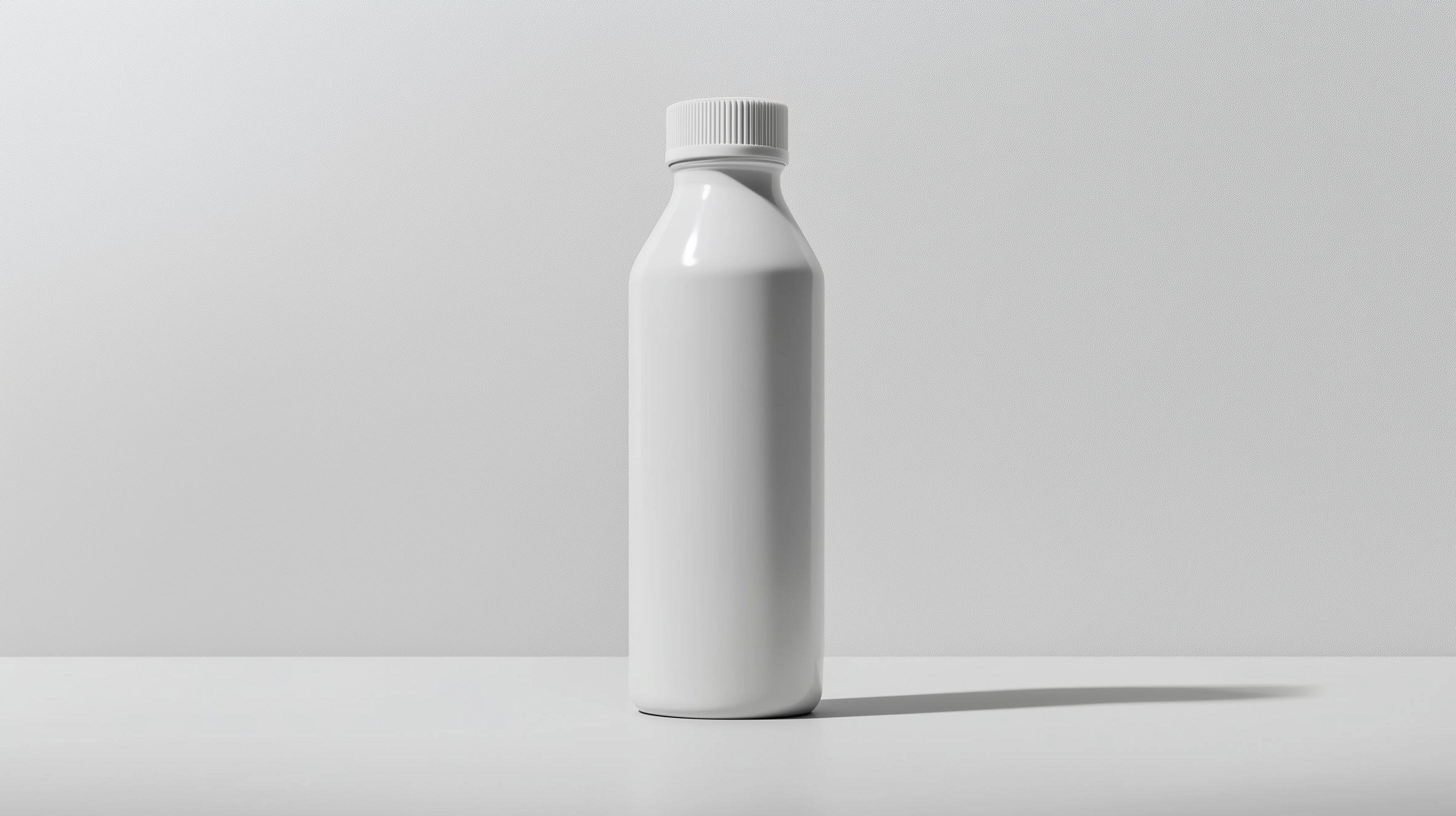 Das Bild zeigt eine einfache, weiße Kunststoffflasche ohne jegliche Aufdrucke oder Beschriftungen. Die Flasche steht auf einem neutralen, hellen Untergrund und hat einen schlichten, minimalistischen Stil. Sie eignet sich hervorragend als Platzhalter für Produktaufnahmen, etwa von Kosmetika, Reinigungsmitteln oder Nahrungsergänzungsmitteln. Das hochauflösende Foto ist unter einer Creative-Commons-Lizenz frei verwendbar und kann sowohl für Blogs, Newsletter als auch Social-Media-Posts eingesetzt werden.