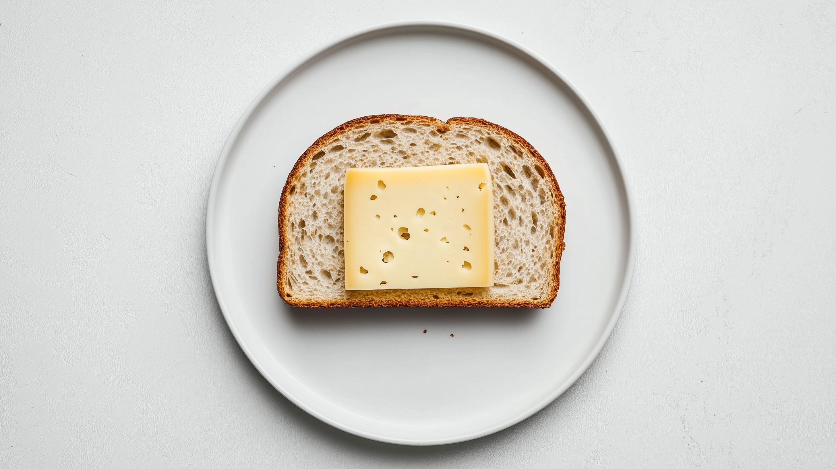 Das Bild zeigt ein Stück frisch geröstetes Roggenbrot mit einem Stück Käse darauf, auf einem schlichten weißen Teller angerichtet. Die Perspektive ist klar und direkt, mit dem Brot und Käse mittig im Fokus. Die Farbgebung ist zurückhaltend, mit den natürlichen Brauntönen des Brotes und der goldenen Farbe des Käses, die sich vor dem weißen Hintergrund des Tellers und des Bildrahmens gut abheben. Das Arrangement wirkt minimalistisch und reduziert, was eine ruhige, entspannte Stimmung vermittelt. Dieses kostenlose Stockfoto in hoher Auflösung eignet sich ideal für Blogs, Newsletter, Social-Media-Beiträge oder Werbematerial rund um Themen wie Ernährung, Landwirtschaft oder Gastronomie. Es steht unter der Creative-Commons-Lizenz zur Verfügung.