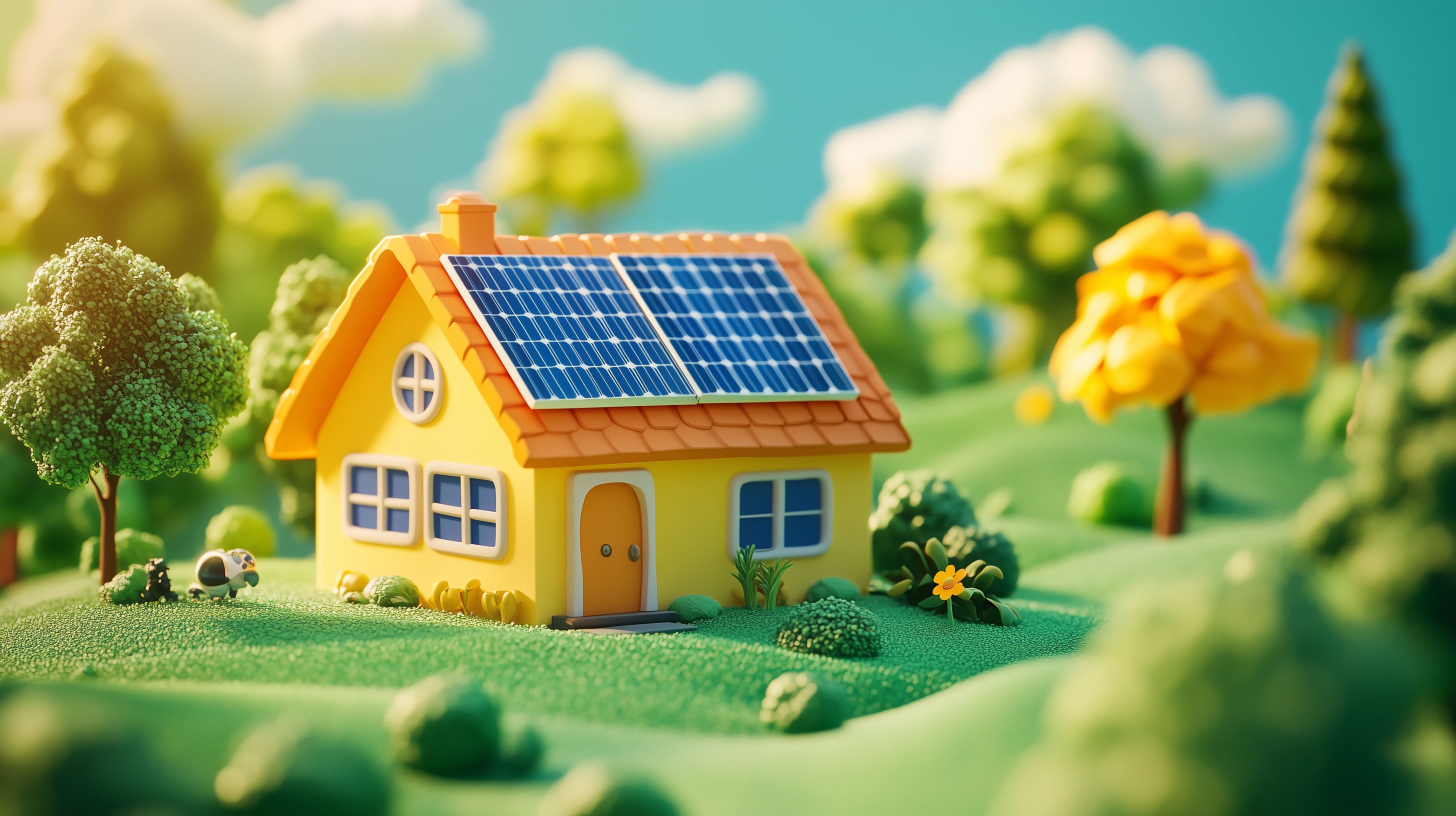 Das Bild zeigt ein detailliertes Modellhaus mit Solarpanelen auf dem Dach, umgeben von einer lebendigen, grünen Landschaft mit Blumen, Bäumen und Wolken am Himmel. Es vermittelt den Eindruck eines nachhaltigen, umweltfreundlichen Traumhauses, das mit Solarenergie betrieben wird. Dieses farbenfrohe, hochauflösende Stockfoto im Creative-Commons-Stil eignet sich perfekt für Beiträge zu Themen wie Erneuerbare Energien, Umweltschutz oder nachhaltige Lebensweise in Blogs, Newslettern oder sozialen Medien.