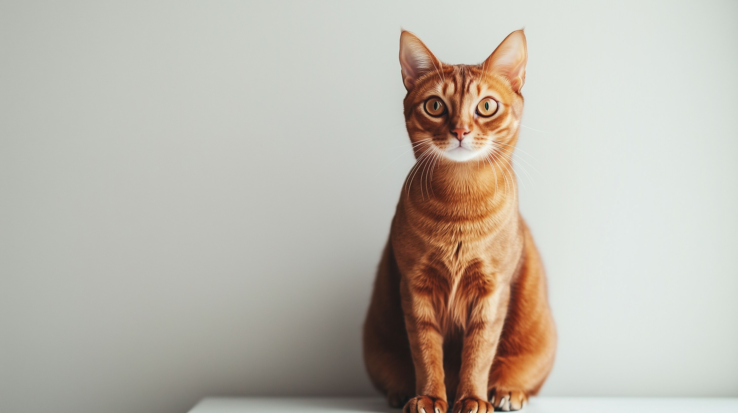 Dieses hochauflösende Stockfoto zeigt eine Abessinierkatze mit einem intensiven, beinahe menschlichen Blick. Die Katze sitzt aufmerksam und posiert vor einem schlichten, weißen Hintergrund. Mit ihrem strahlenden Fell in Rot- und Brauntönen sowie den großen Augen strahlt das Tier eine Anmut und Eleganz aus, die ideal für die Verwendung in Blogbeiträgen, Social-Media-Posts oder Werbematerialien geeignet ist. Als kostenloses Stockfoto unter der Creative-Commons-Lizenz lässt sich dieses Bild vielfältig und ohne Nutzungsgebühren einsetzen.