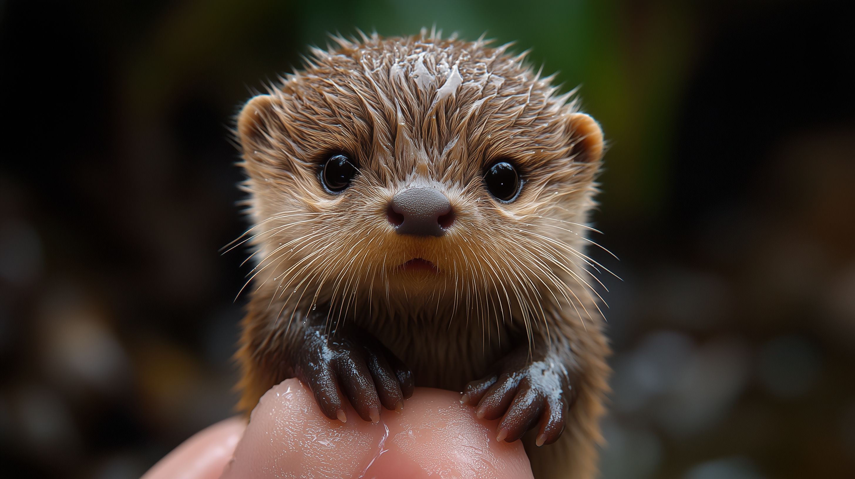 Das Bild zeigt einen entzückenden Baby-Otter, der sanft auf einem menschlichen Finger sitzt. Die Nahaufnahme zeigt die weichen, stacheligen Texturen des kleinen Tieres sowie seine großen, schwarzen Augen, die einen neugierigen und freundlichen Blick vermitteln. Der scharfe Kontrast zwischen dem braunen Fell des Otters und der hellen Haut des Fingers unterstreicht die Zartheit und Zierlichkeit des Babytiers. Dieses kostenlose Stockfoto in hoher Auflösung eignet sich hervorragend für den Einsatz in Blogs, Newslettern, Social-Media-Posts oder Werbekampagnen unter der Creative-Commons-Lizenz.