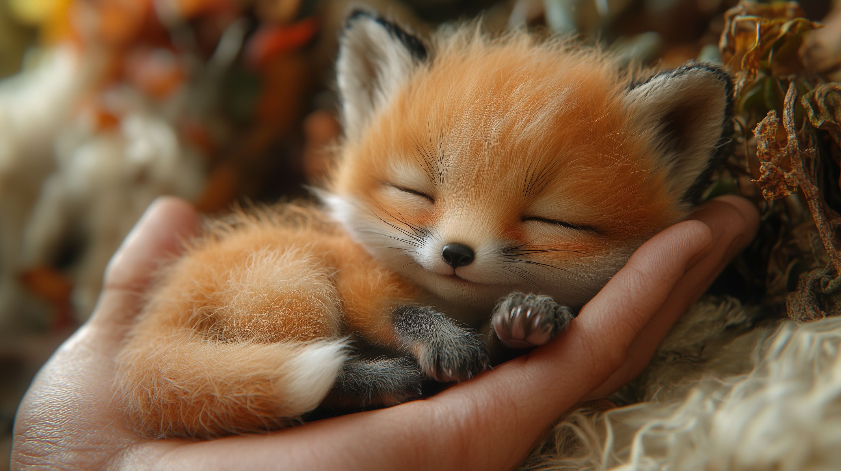Dieses entzückende Foto zeigt einen friedlich schlafenden Fuchswelpen, der liebevoll in einer menschlichen Hand gebettet ist. Die samtweiche, rotgoldene Fellstruktur des Tieres steht in wunderbarem Kontrast zu den rauen, schützenden Fingern. Der Ausdruck des Schlafes vermittelt eine Stimmung der Ruhe, Geborgenheit und Fürsorge. Dieses Bild eignet sich hervorragend für den Einsatz in Blogs, Newslettern, Social-Media-Kanälen oder der Werbung, wo es eine emotionale Anziehungskraft entfalten kann. Als hochauflösendes Stockfoto unter einer Creative-Commons-Lizenz steht es für vielfältige Nutzungszwecke zur Verfügung.