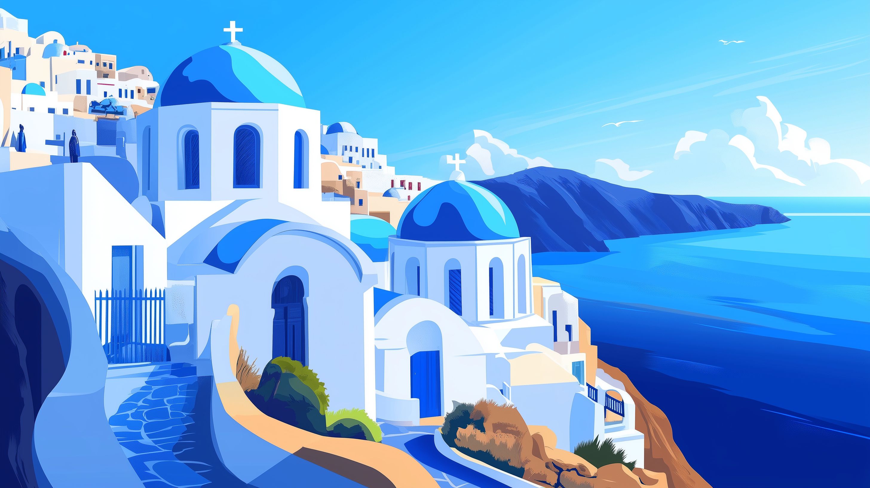 Dieses beeindruckende Bild zeigt die charakteristische Architektur und Landschaft der griechischen Insel Santorini. Im Vordergrund sind die typischen weiß getünchten Häuser mit ihren blauen Kuppeln und Türmen zu sehen, die sich malerisch an den Felshängen entlang ziehen. Der Blick schweift über die azurblaue Weite des Mittelmeers bis hin zu den sanft geschwungenen Berggipfeln am Horizont. Die Szene strahlt eine anmutige Ruhe und mediterranes Flair aus, das Betrachter in eine entspannte Urlaubsstimmung versetzen kann. Dieses hochwertige Stockfoto in hoher Auflösung eignet sich hervorragend für die Verwendung in Blogbeiträgen, Newslettern, Werbekampagnen oder auf Social-Media-Kanälen zum Thema Reisen, Tourismus und Griechenland. Es steht unter der Creative-Commons-Lizenz zur kostenlosen Nutzung zur Verfügung.