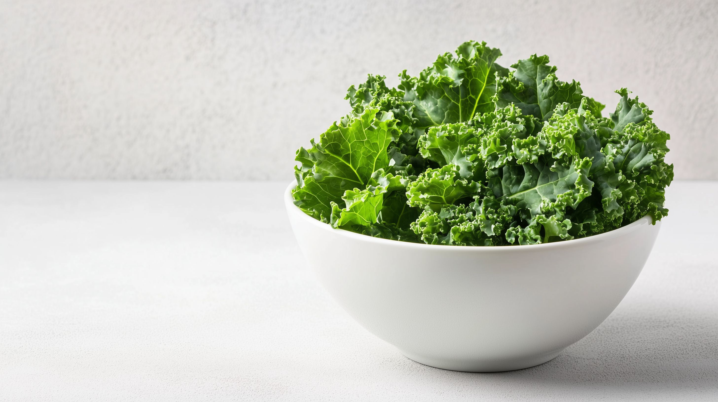 Dieses Foto zeigt einen Haufen frischer, grüner Grünkohlblätter in einer weißen Schüssel vor einem hellen Hintergrund. Die Blätter sind saftig und kräftig gefärbt, was den gesunden, natürlichen Charakter des Gemüses betont. Das Bild eignet sich perfekt als Stockfoto für Smoothie-Rezepte, Gesundheitsblogs oder Werbung für Bio-Lebensmittel. In hoher Auflösung und unter einer Creative-Commons-Lizenz verfügbar, lässt es sich ideal in verschiedensten digitalen Projekten einsetzen.