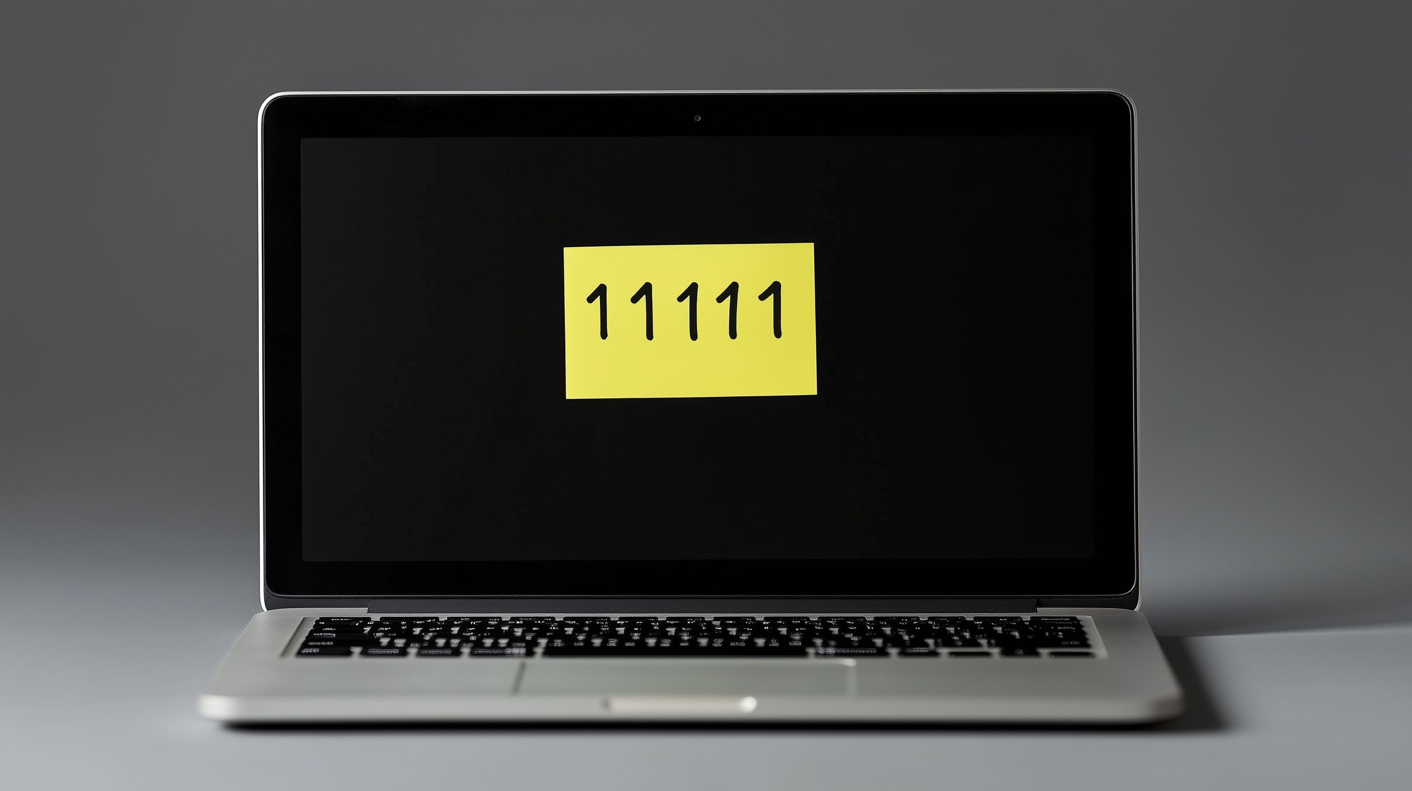 Das Bild zeigt einen Laptop-Bildschirm mit einer Post-it-Notiz darauf, auf der die Zahlenfolge '11111' zu sehen ist. Diese Darstellung verdeutlicht, wie leicht ein Passwort zu knacken sein kann, wenn es zu einfach und unsicher ist. Das Foto eignet sich gut für Beiträge zum Thema Cybersicherheit, Online-Sicherheit oder Datenschutz. Es kann beispielsweise in Blogbeiträgen, Newsletter-Layouts oder Sozialen Medien verwendet werden, um auf die Wichtigkeit von starken Passwörtern aufmerksam zu machen. Dieses hochauflösende Stockfoto steht unter der Creative-Commons-Lizenz zur freien Verwendung zur Verfügung.
