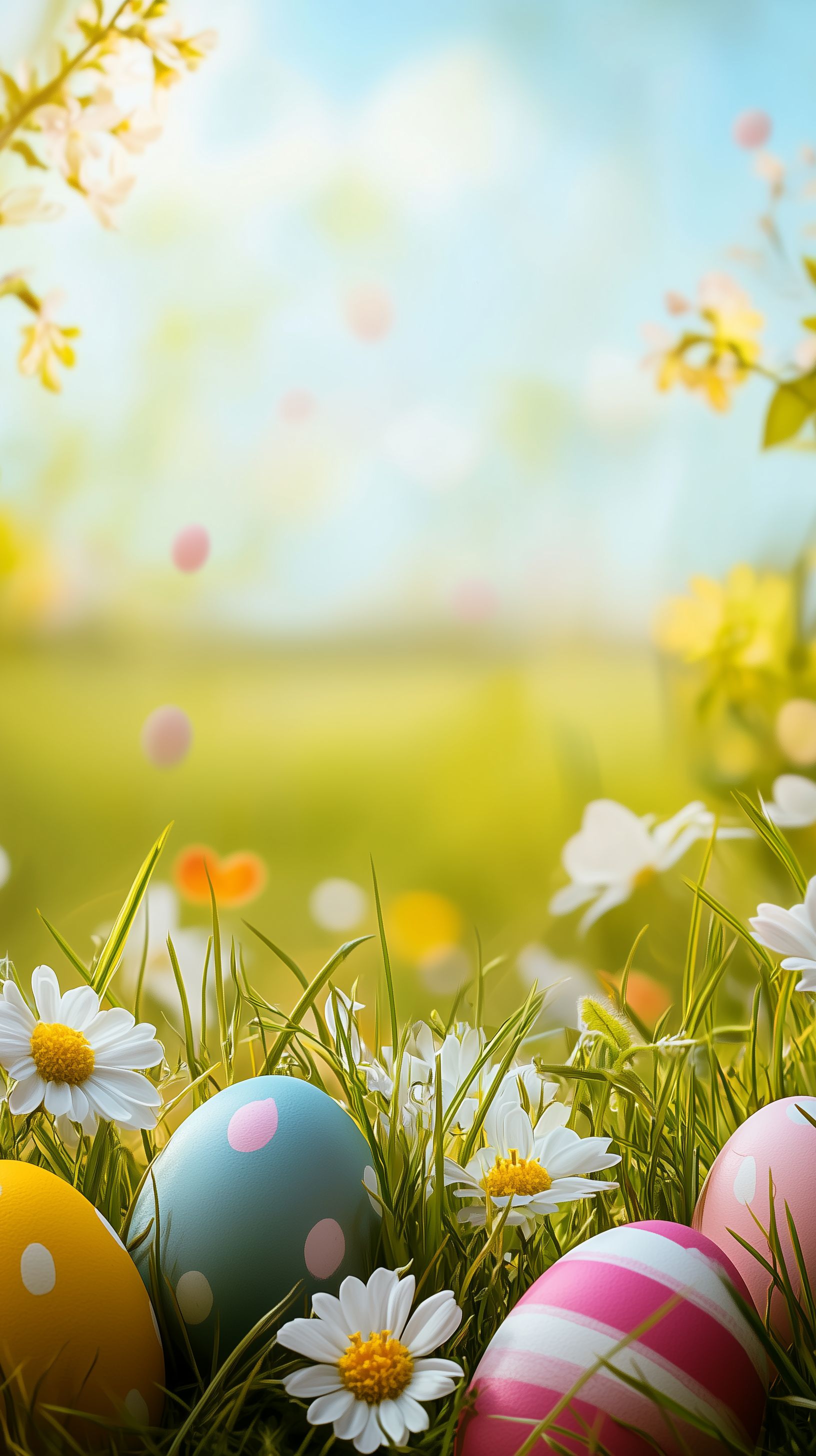 Dieses stimmungsvolle Bild zeigt eine idyllische Osterlandschaft mit bunten Eiern, die zwischen frischen Frühlingsblumen und Gras platziert sind. Der weiche, unscharfe Hintergrund mit Bokeh-Effekt verleiht der Szene eine fröhliche, fast märchenhafte Atmosphäre. Das Foto eignet sich hervorragend als Hintergrund oder Dekorationselement für Oster-Themen in Blogs, Newslettern, auf Social-Media-Kanälen oder in Werbekampagnen. Als hochauflösendes Stockfoto unter Creative-Commons-Lizenz steht es kostenfrei zum Download zur Verfügung.