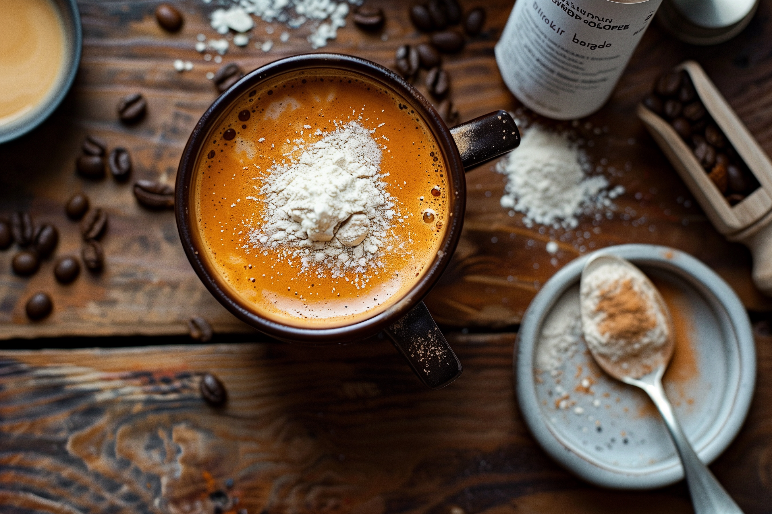 Dieses Bild zeigt eine handgefertigte Kaffeezubereitung mit verschiedenen Zutaten wie Kaffeebohnen, Kaffeepulver und Gewürzen. Die Szenerie ist auf einem rustikalen Holztisch inszeniert, was eine gemütliche und einladende Atmosphäre erzeugt. Das Foto bietet eine hohe Auflösung und kann als kostenloses Stock-Foto unter einer Creative-Commons-Lizenz verwendet werden. Es eignet sich hervorragend für Blogs, Newsletter, Social-Media-Beiträge oder Werbematerialien rund um das Thema Kaffee, Frühstück oder Genuss.