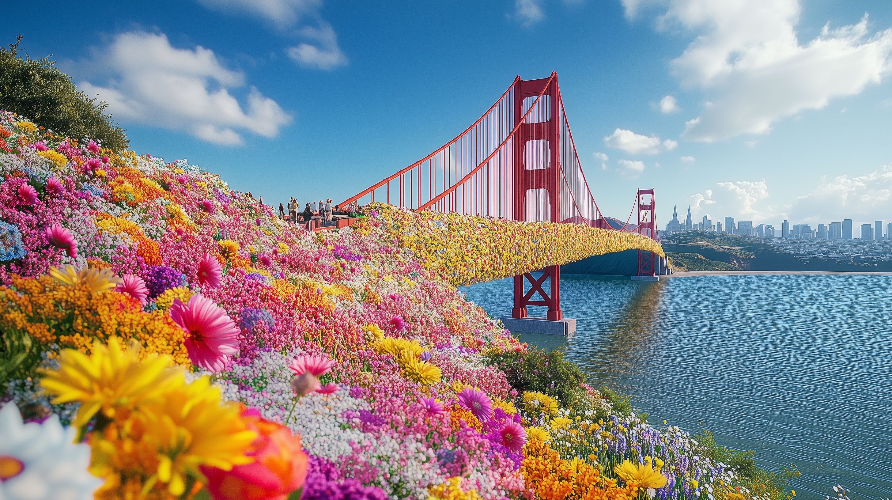 Dieses beeindruckende Foto zeigt den ikonischen Blick auf die Goldene Brücke in San Francisco, umgeben von einer prachtvollen Blumenlandschaft. Die Brücke erstreckt sich über die Bucht, während im Vordergrund ein Meer an bunten Blüten in Gelb, Orange, Rosa und Lila die Szene schmückt. Im Hintergrund ist die Skyline von San Francisco zu sehen, die den imposanten Rahmen für dieses idyllische Bild bildet. Es handelt sich um ein kostenloses Stockfoto in hoher Auflösung, das unter der Creative-Commons-Lizenz veröffentlicht wurde und sich hervorragend für die Verwendung in Blogs, Newslettern, Social-Media-Beiträgen oder Werbekampagnen eignet.